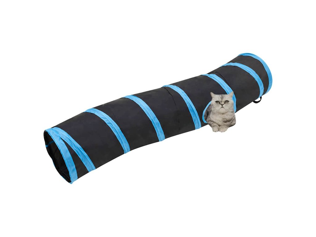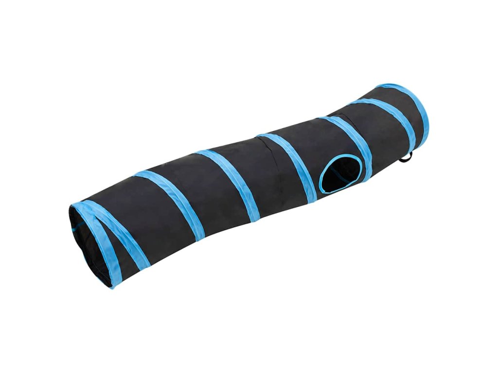 Kočičí tunel ve tvaru S černý a modrý 122 cm polyester 172185
