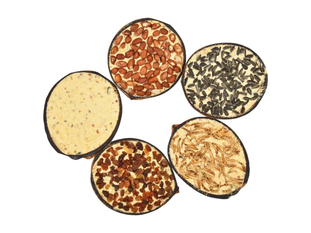 Kvalitní suroviny, včetně semínek, zrníček, červů, rozinek a arašídů, jsou dobře vyvážené, aby ptákům poskytly výživný olej a proteiny plné energie, které jim pomohou udržovat optimální tělesnou teplotu po celou zimu. Jsou perfektním krmivem pro divoké ptactvo po celý rok!