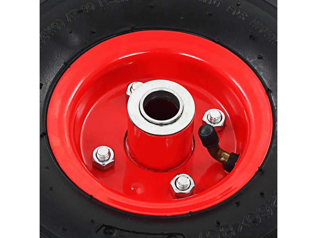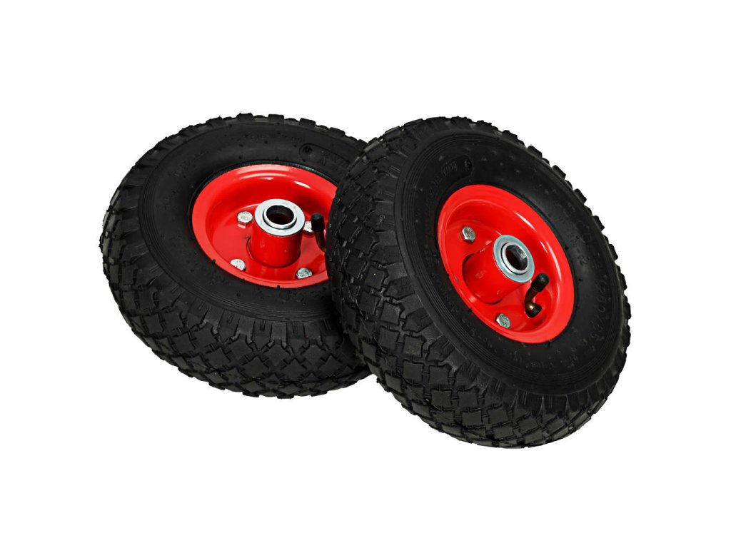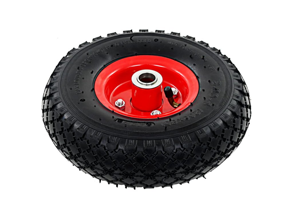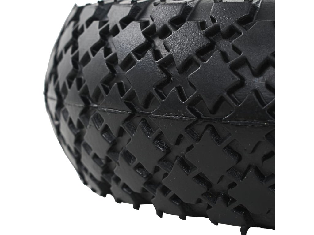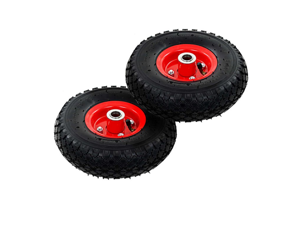 Solidní pneumatiky jsou vyrobeny z odolného, otěruvzdorného pryžového materiálu a mají speciálně designovaný vzorek, který zvyšuje přilnavost k povrchu při vyšších rychlostech. Ráfky kol jsou vyrobeny z odolného kovu. Náhradní kolečka k vozíku mají univerzální velikost a lze je snadno instalovat do rudlů, ručních vozíků apod.