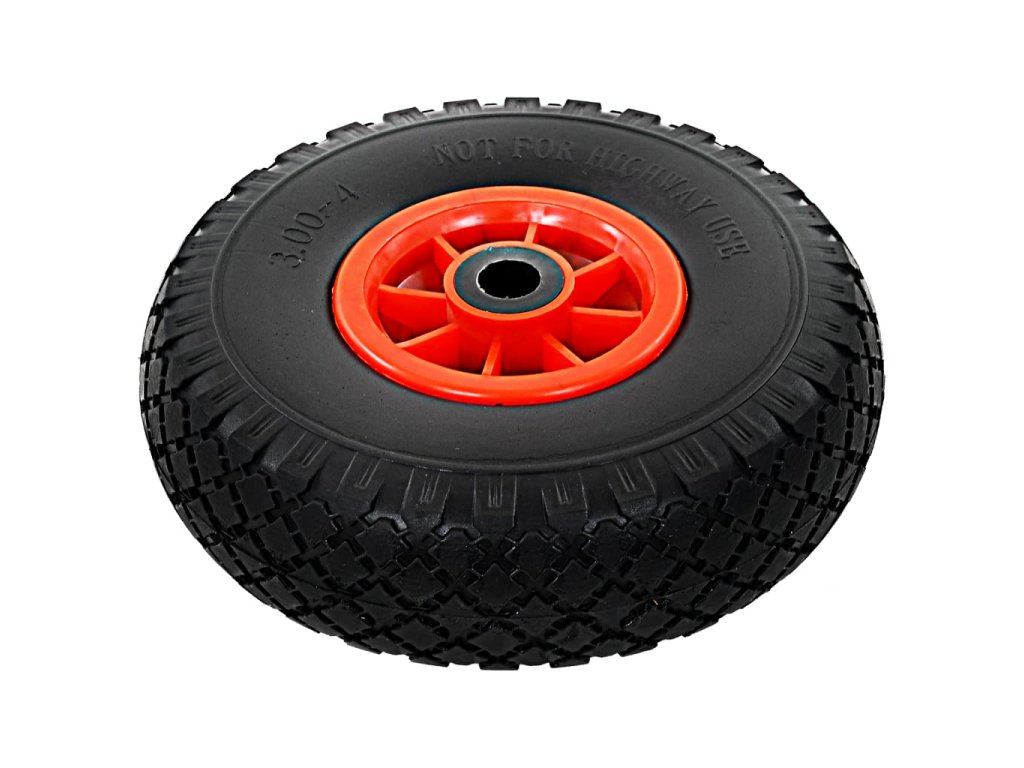 Solidní pneumatiky jsou vyrobeny z odolného, otěruvzdorného PU elastomeru a mají speciálně designovaný vzorek, který zvyšuje přilnavost k povrchu při vyšších rychlostech. Ráfky kol jsou vyrobeny z robustního plastu. Náhradní kolečka k vozíku mají univerzální velikost a lze je snadno instalovat do rudlů, ručních vozíků apod.