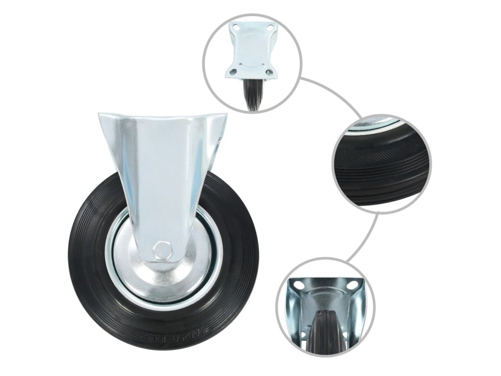 Kolečka jsou vyrobena z gumy, která je známá pro svou schopnost pohlcovat nárazy a vibrace. Ať už tedy kolečka namontujete na cokoliv, budete to moci přesouvat hladce a v tichosti. Jejich hladký povrch navíc ochrání vaši podlahu před poškrábáním. Zinkem potažený ocelový rám je odolný proti rzi, dodává kolečkům na odolnosti a prodlužuje jejich životnost. Dvě z těchto otočných koleček jsou vybavena dvojitou brzdou pro flexibilnější ovládání. Každé kolečko má maximální nosnost až 180 kg.