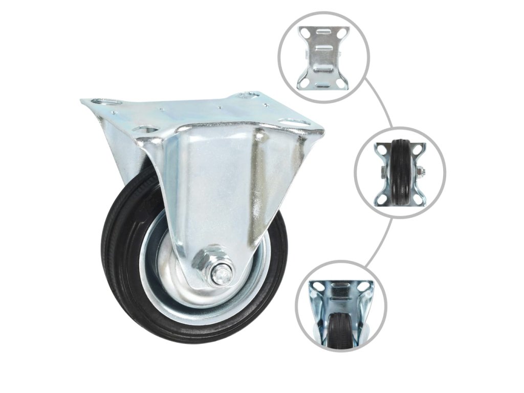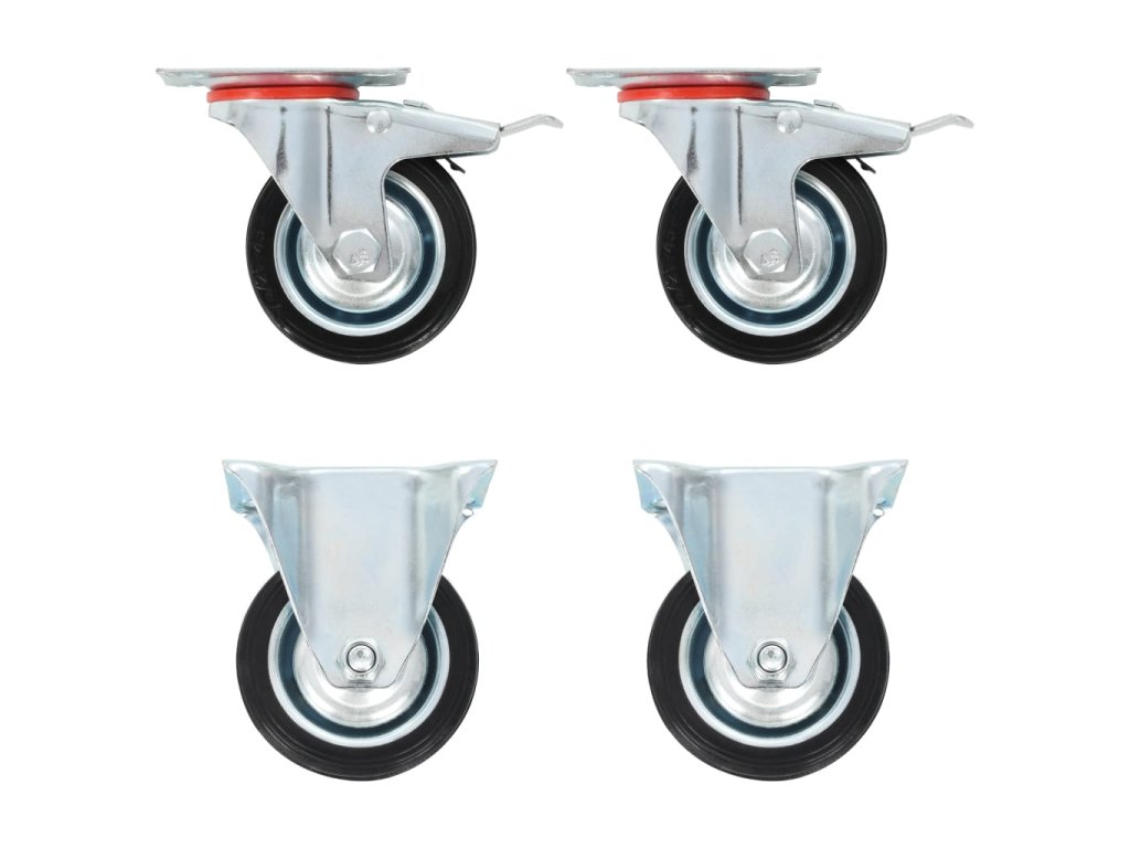 Kolečka jsou vyrobena z gumy, která je známá pro svou schopnost pohlcovat nárazy a vibrace. Ať už tedy kolečka namontujete na cokoliv, budete to moci přesouvat hladce a v tichosti. Jejich hladký povrch navíc ochrání vaši podlahu před poškrábáním. Zinkem potažený ocelový rám je odolný proti rzi, a tudíž kolečkům dodává na odolnosti a prodlužuje jejich životnost. Dvě z těchto otočných koleček jsou vybavena dvojitou brzdou pro flexibilnější ovládání. Každé kolečko má maximální nosnost až 50 kg.