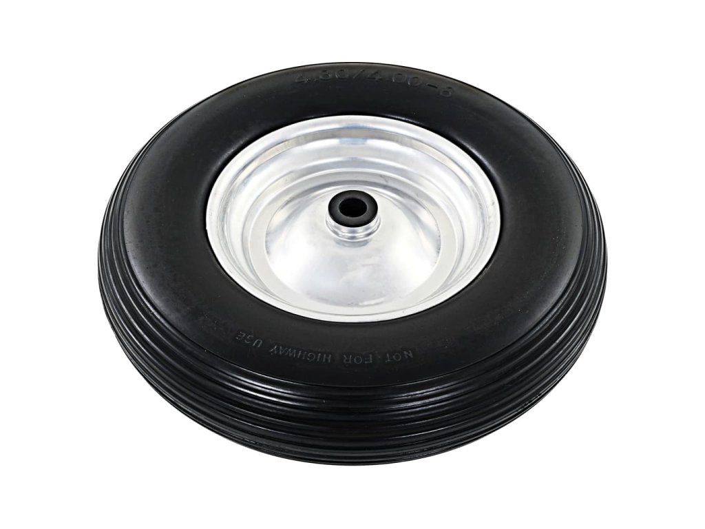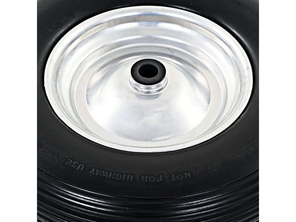 Tato solidní pneumatika je vyrobena z odolného, otěruvzdorného PU elastomeru a má speciálně designovaný vzorek, který zvyšuje přilnavost k povrchu při vyšších rychlostech. Ráfek kola je vyroben z robustního kovu. Náhradní kolečko má univerzální velikost a lze ho snadno instalovat do stavebního kolečka, vozíků na pytle, ručních vozíků atd.