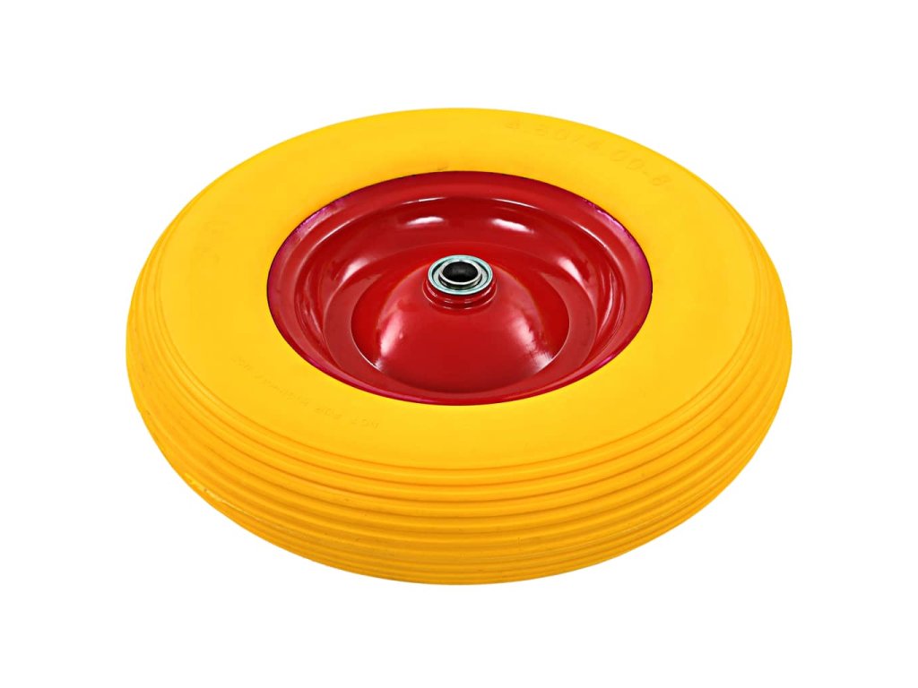 Tato solidní pneumatika je vyrobena z odolného, otěruvzdorného PU elastomeru a má speciálně designovaný vzorek, který zvyšuje přilnavost k povrchu při vyšších rychlostech. Ráfek kola je vyroben z robustního kovu. Náhradní kolečko má univerzální velikost a lze ho snadno instalovat do stavebního kolečka, vozíků na pytle, ručních vozíků atd.