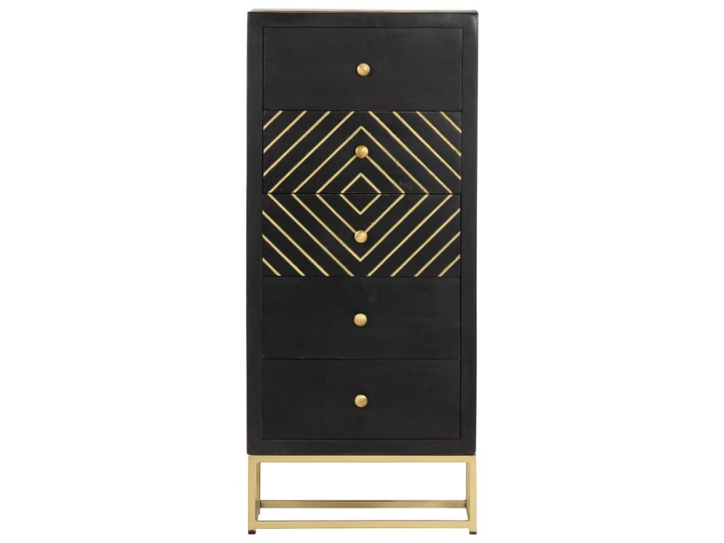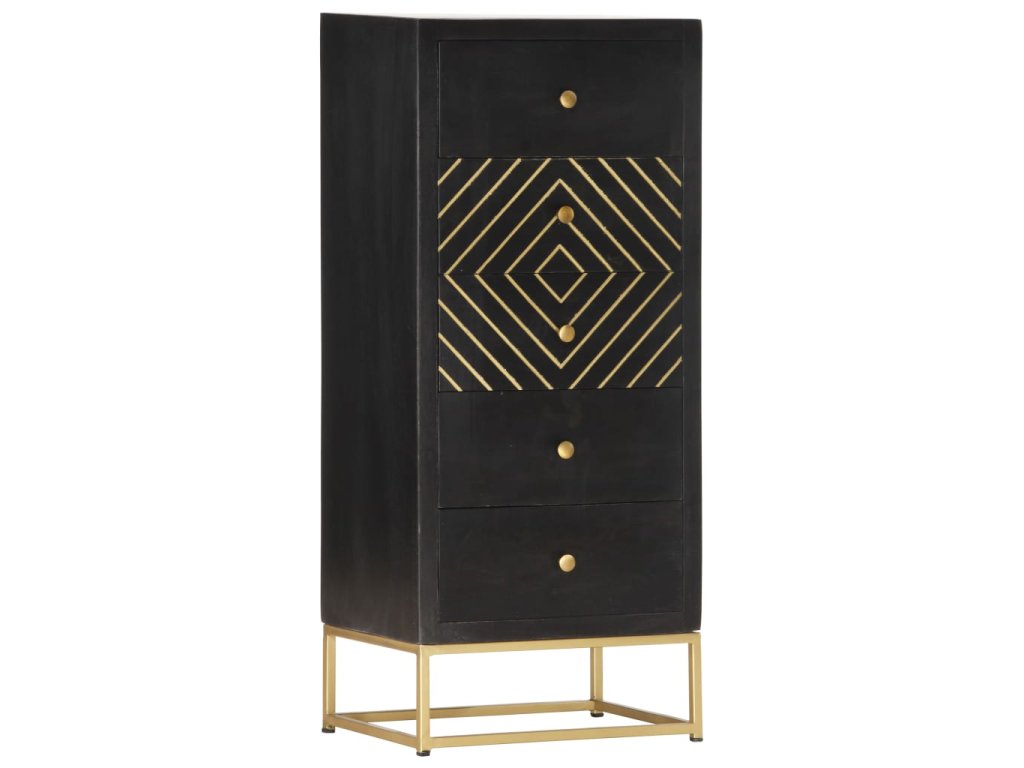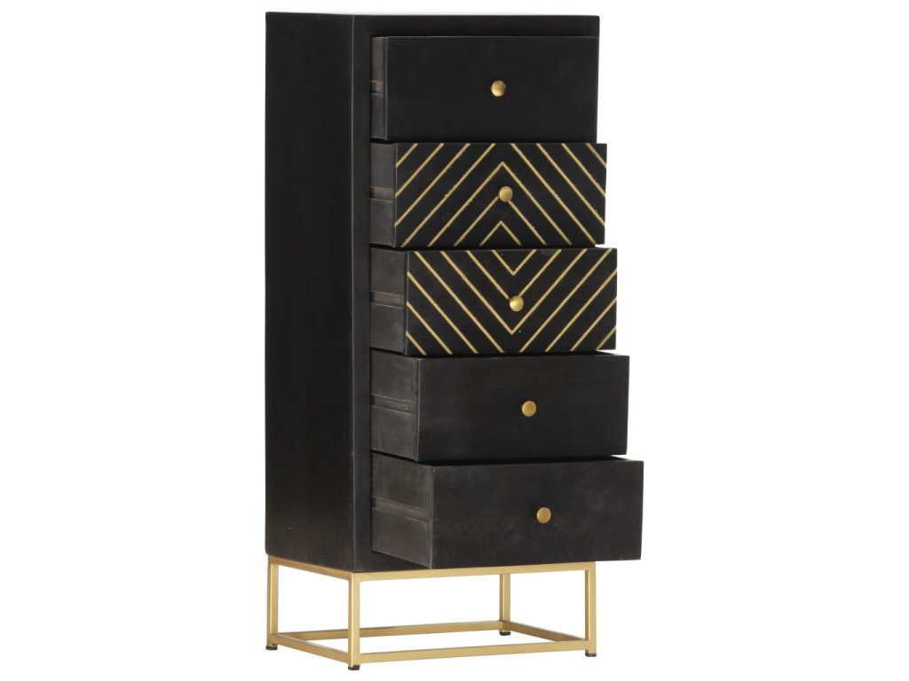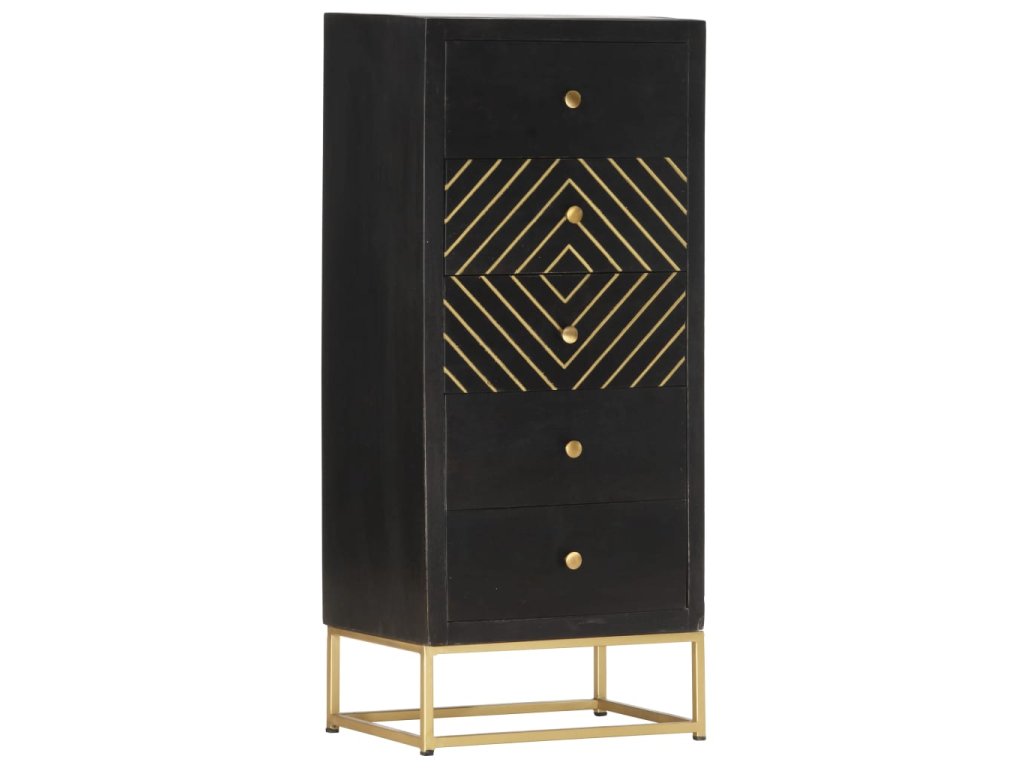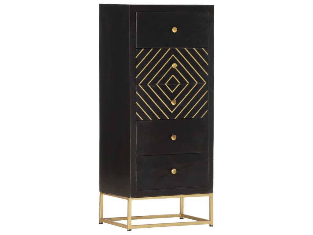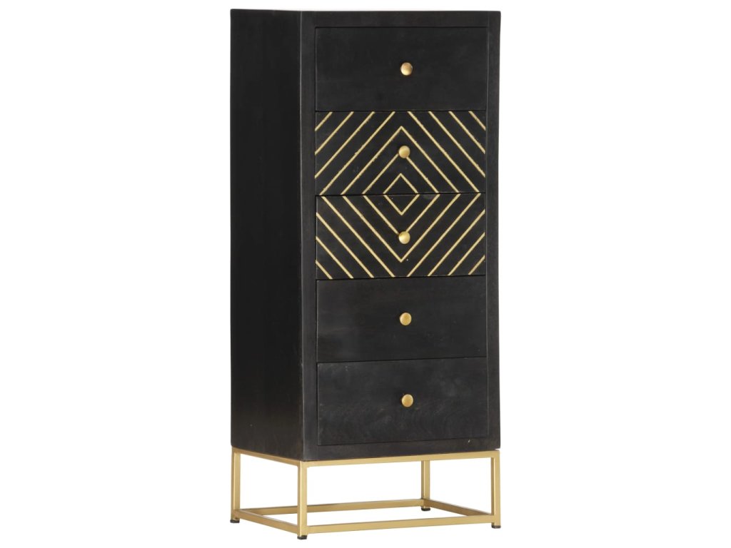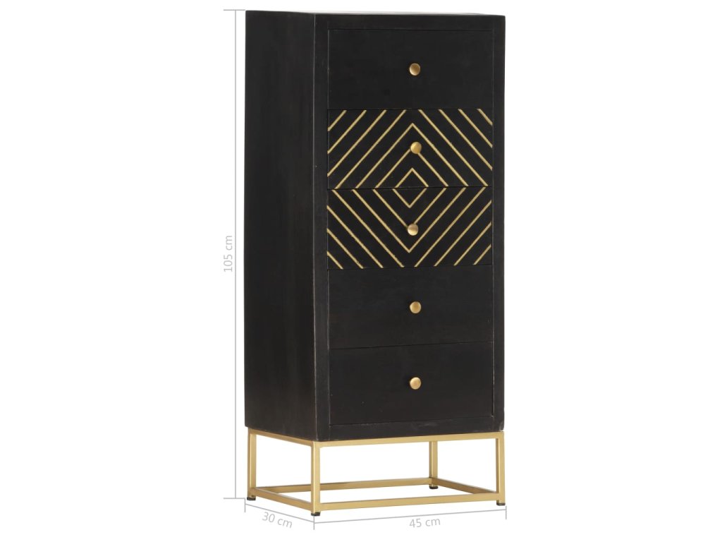 Komoda se zásuvkami černá a zlatá 45x30x105cm masivní mangovník 286513
