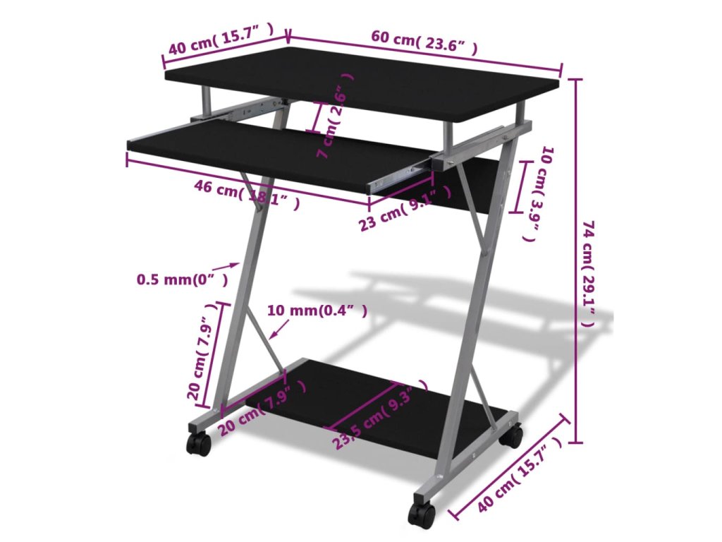 Prostorná pracovní plocha usnadňuje používání vašeho počítače a zároveň umožňuje také pohodlné čtení a psaní. Tento počítačový stůl má vysouvací desku pro klávesnici a spodní poličku, kam můžete umístit váš počítač nebo tiskárnu. PC stůl, vyrobený z dřevotřísky a práškově lakovaného ocelového rámu, vám jistě bude sloužit po dlouhá léta.