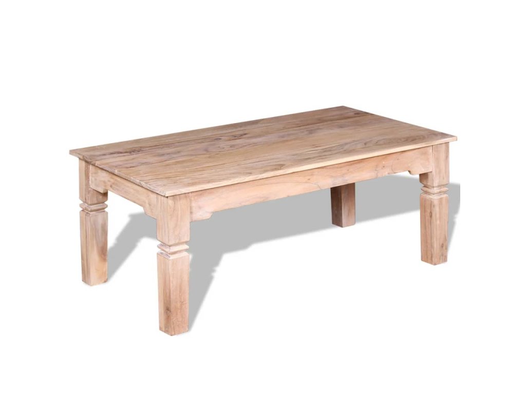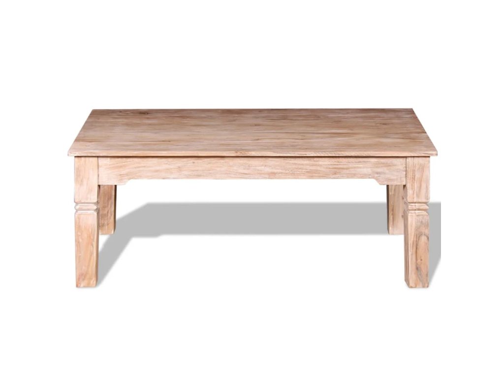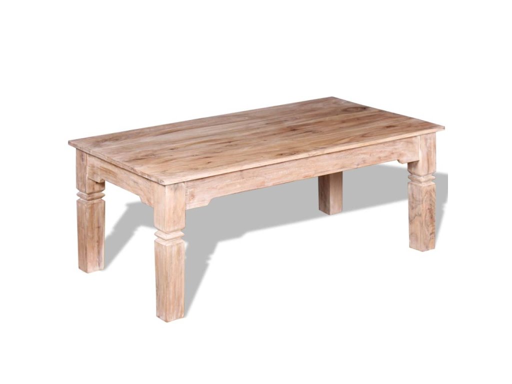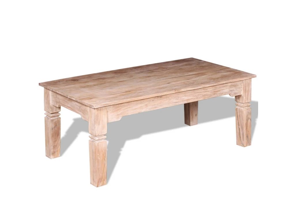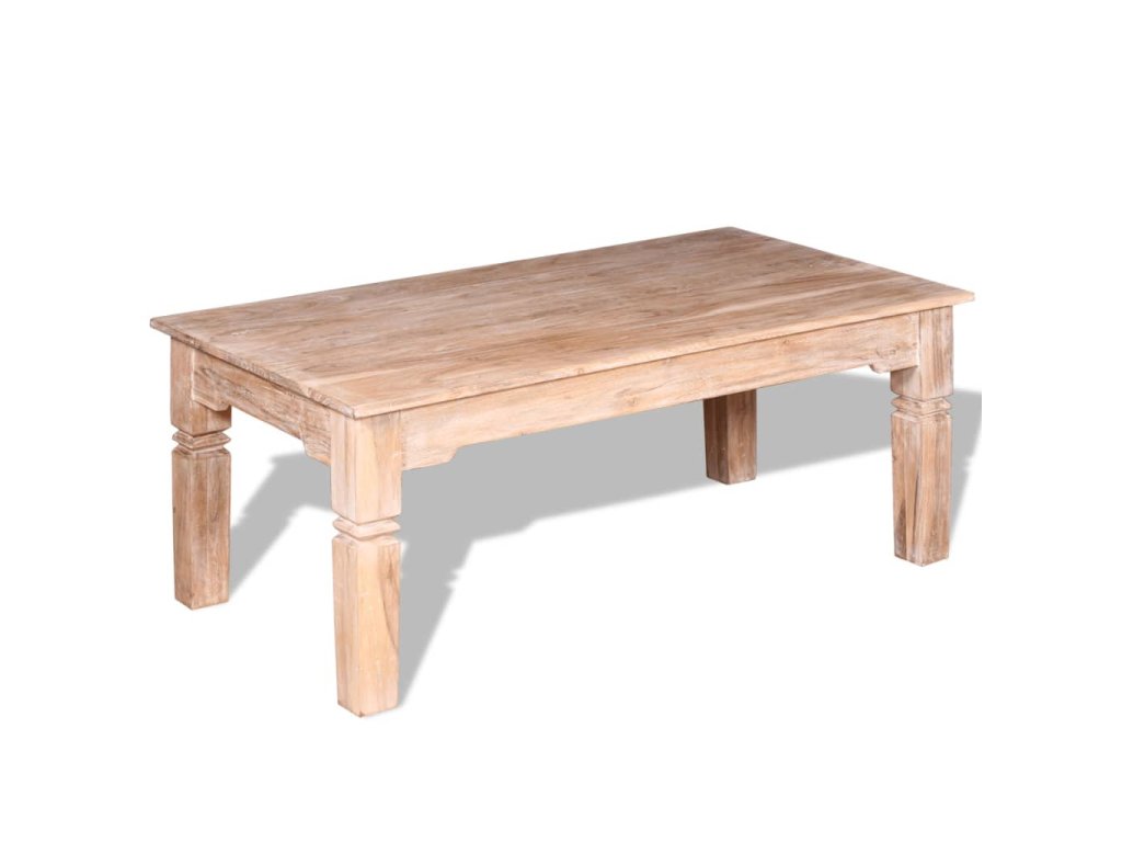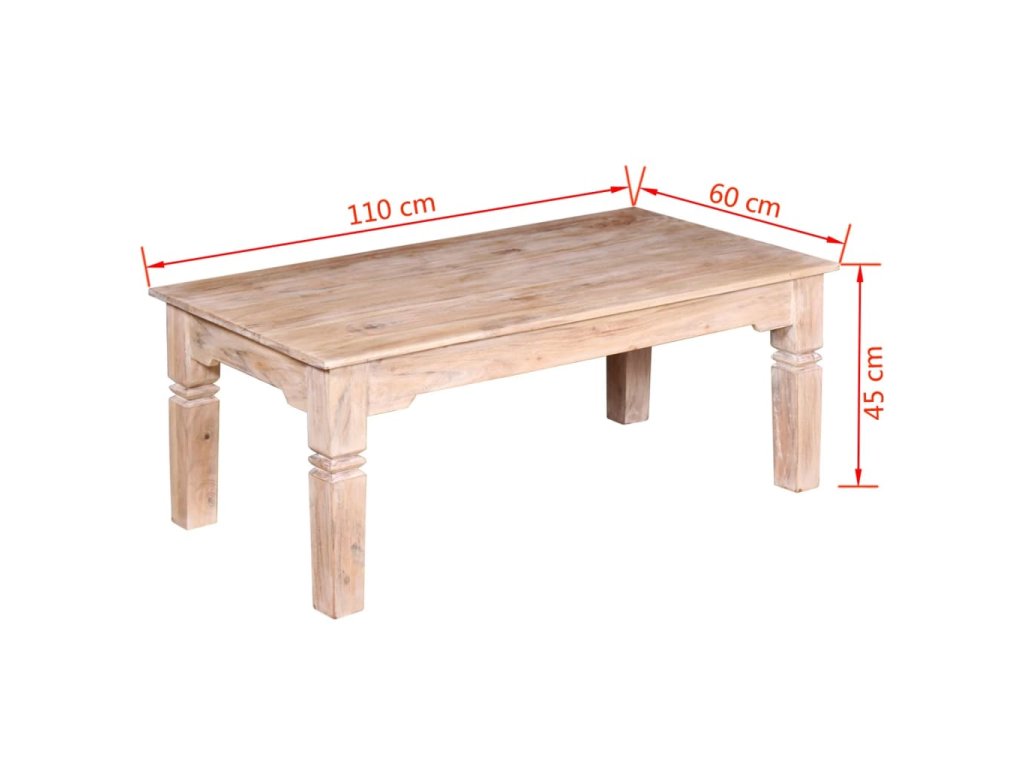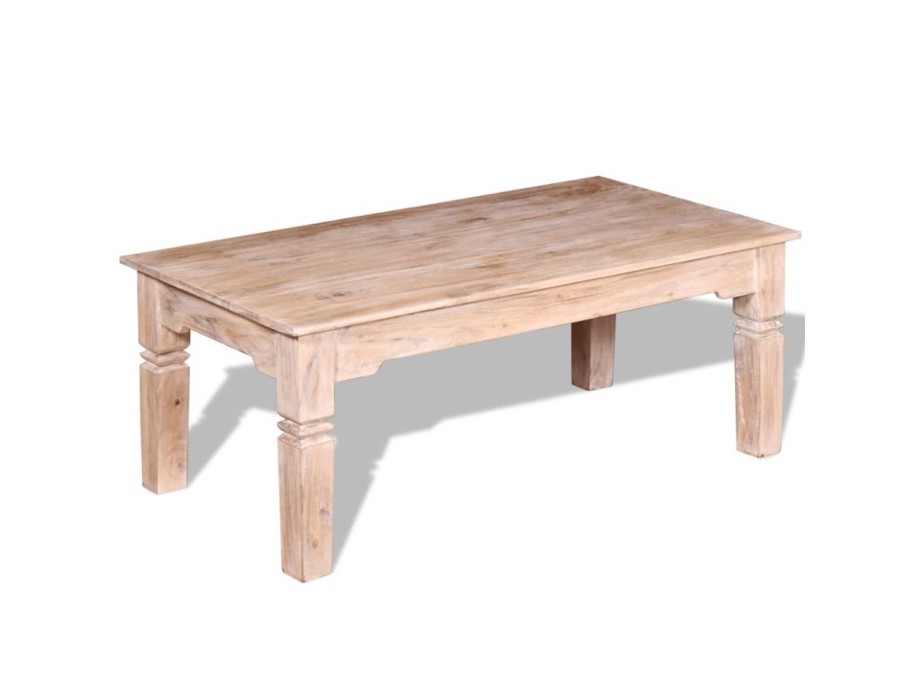 Tento jedinečný konferenční stolek vyrobený z masivního dřeva s povrchovou úpravou bílé kartáčované barvy bude skvělým doplňkem do vašeho pokoje. Může být také používán jako stolek ke gauč, odkládací stolek, a stůl do obývacího pokoje.