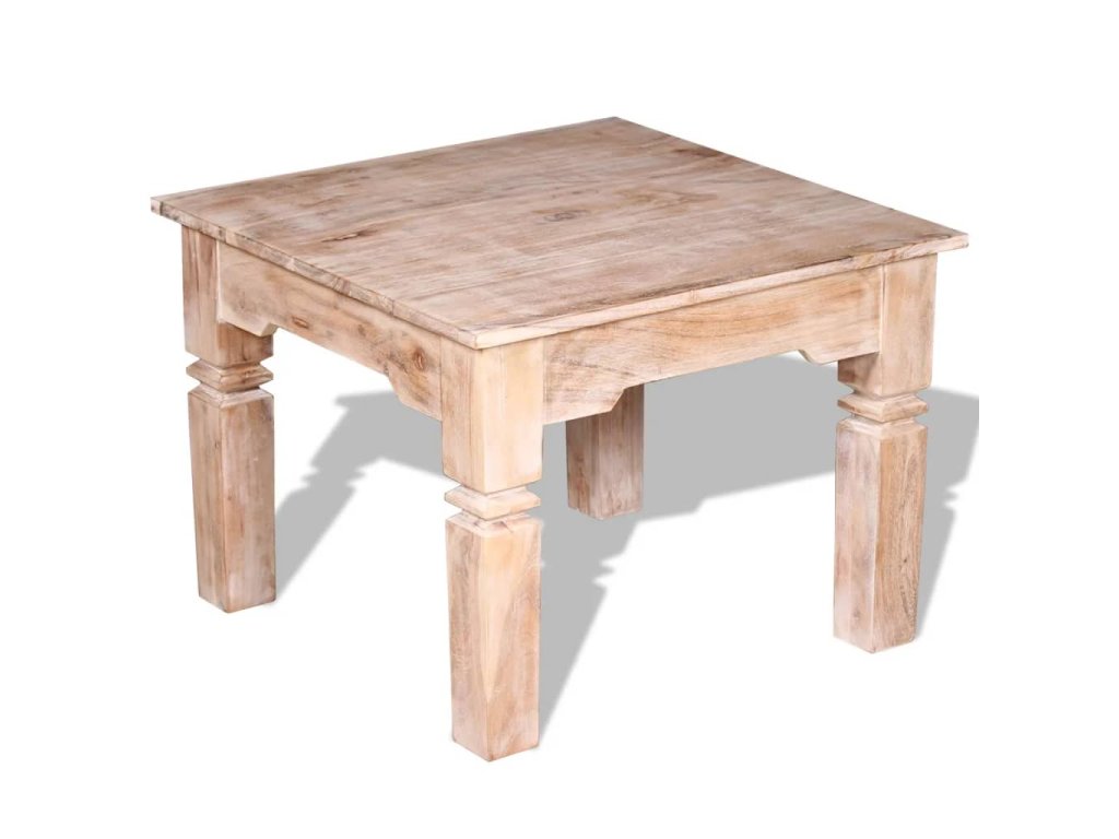 Tento jedinečný konferenční stolek vyrobený z masivního dřeva s povrchovou úpravou bílé kartáčované barvy bude skvělým doplňkem do vašeho pokoje. Může být také používán jako stolek ke gauč, odkládací stolek, a stůl do obývacího pokoje.