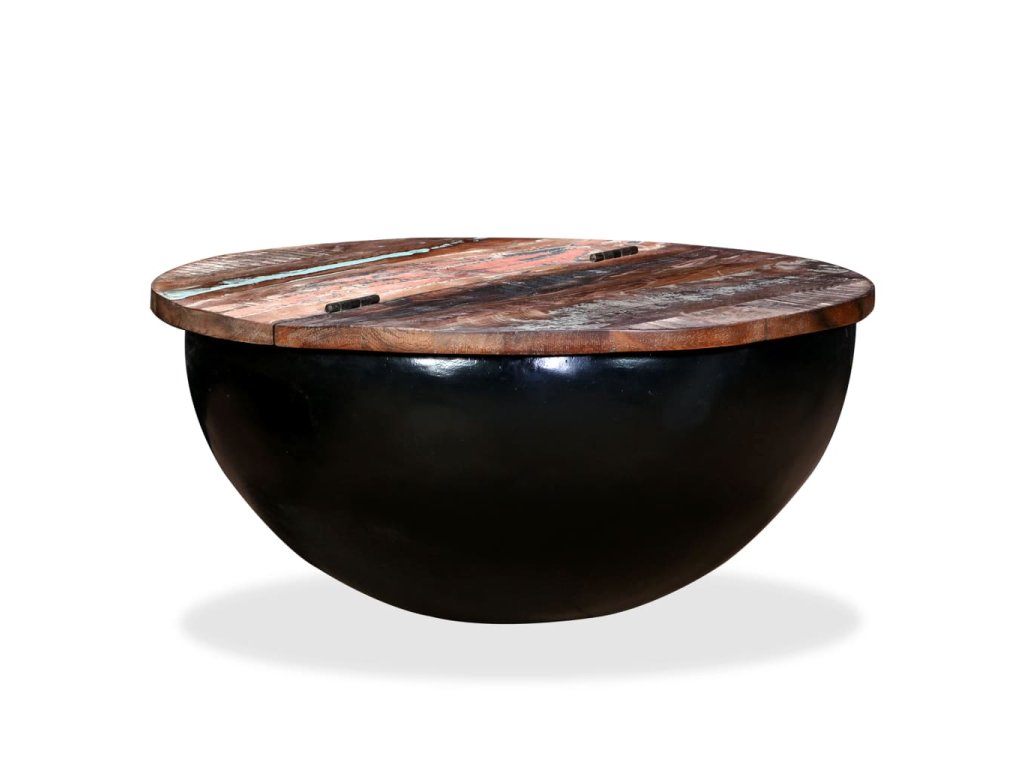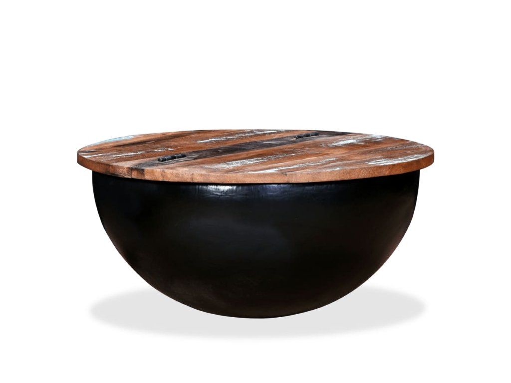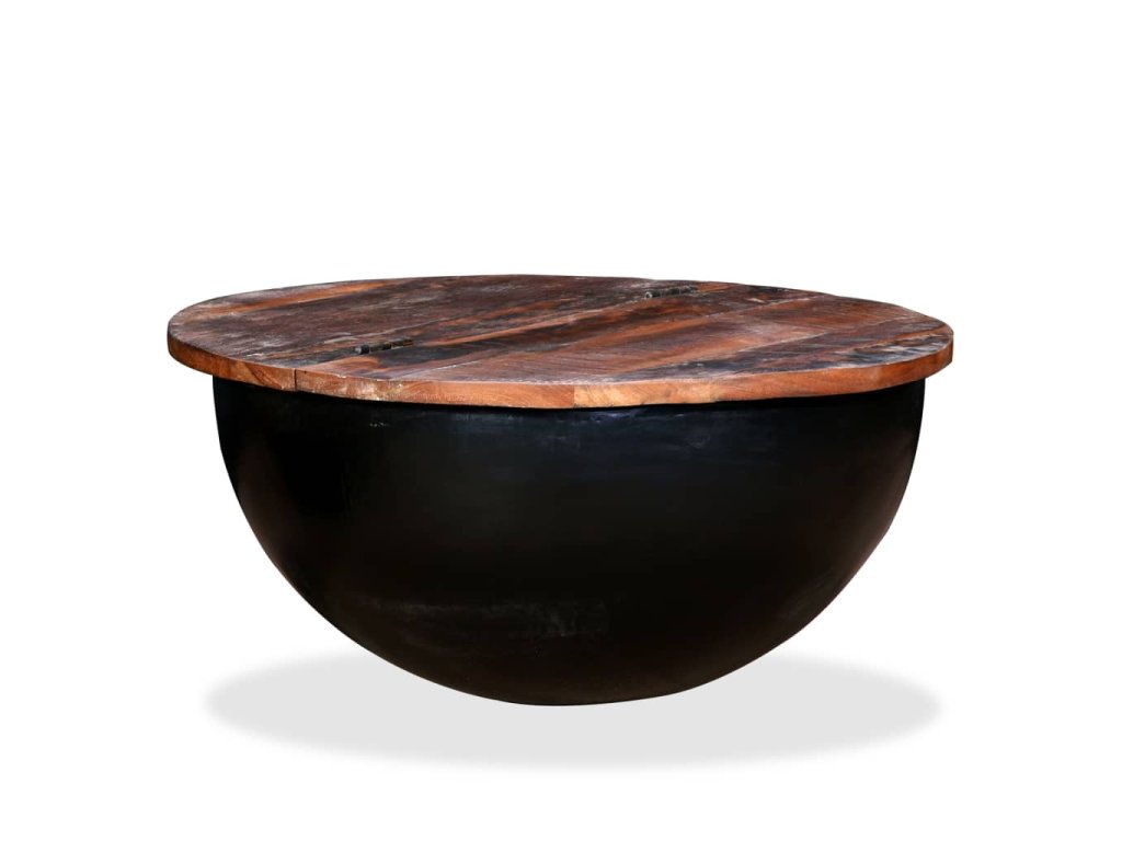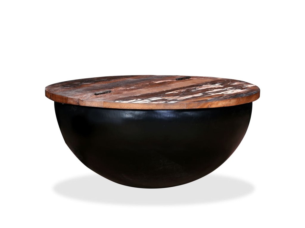 Konferenční stolek, masivní recyklované dřevo, černý, tvar misky 245259