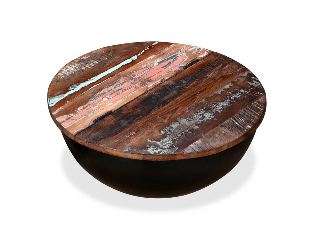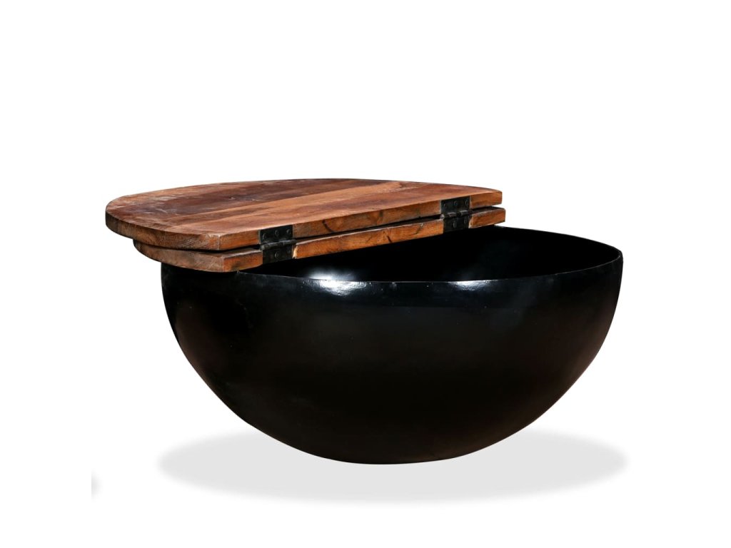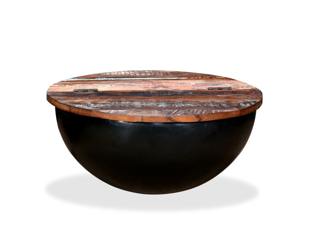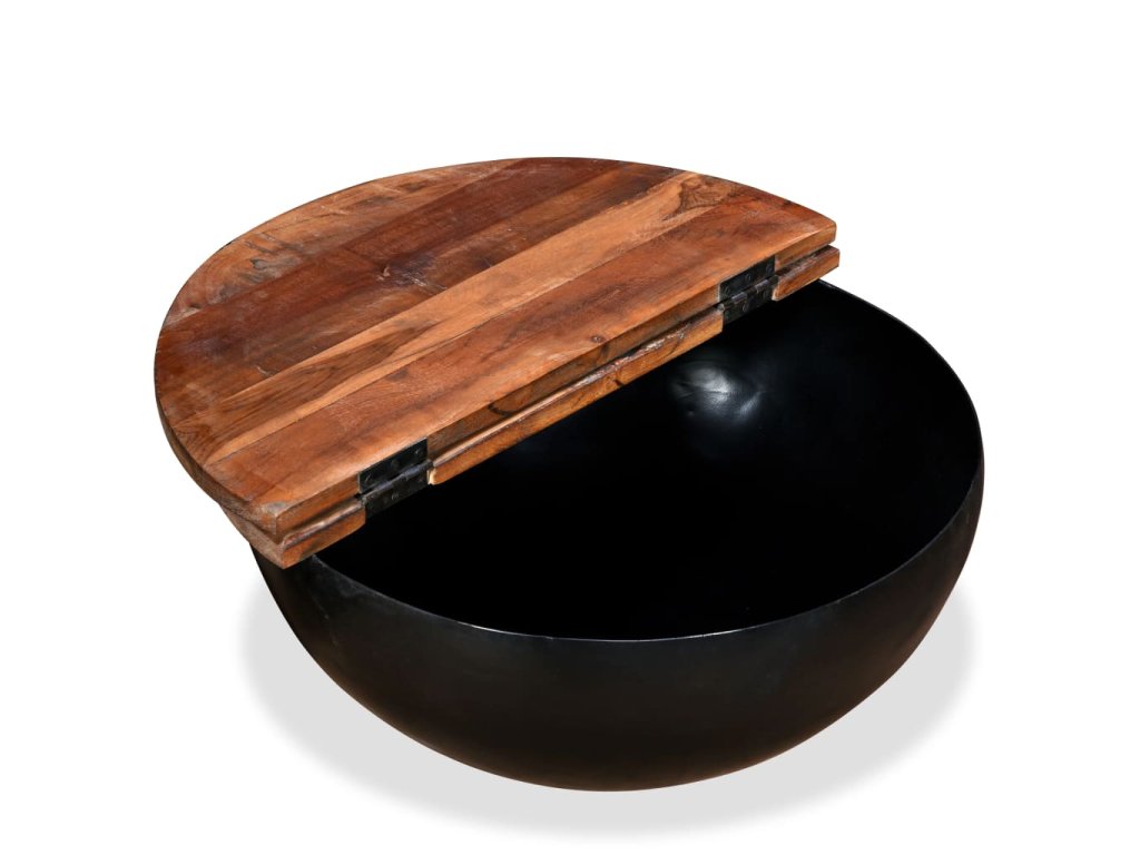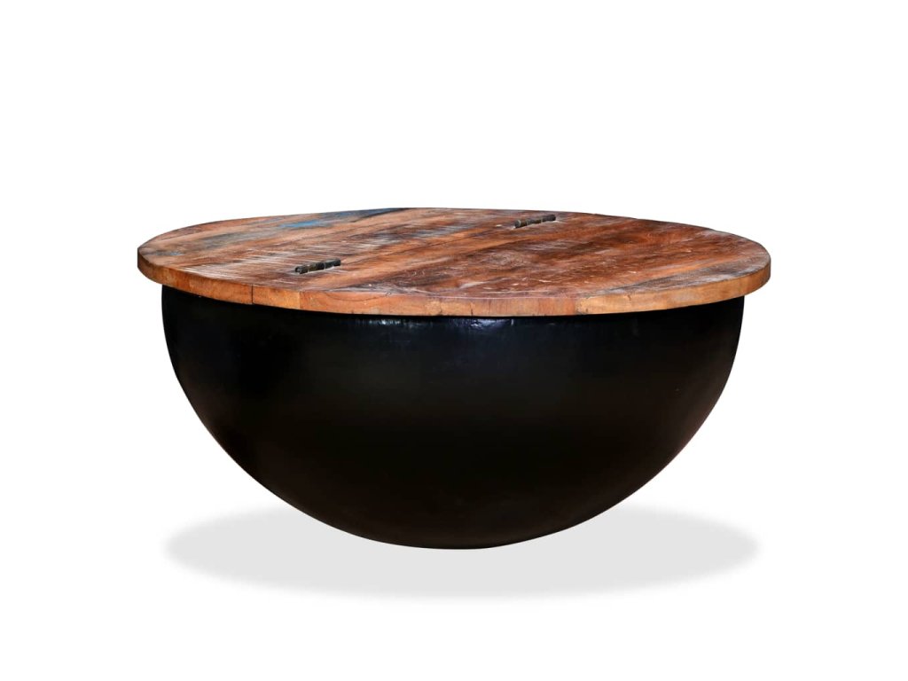 Konferenční stolek, masivní recyklované dřevo, černý, tvar misky 245259
