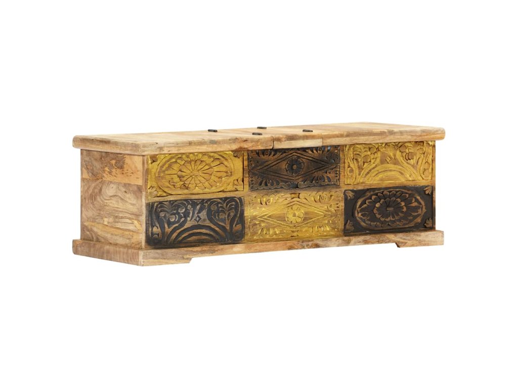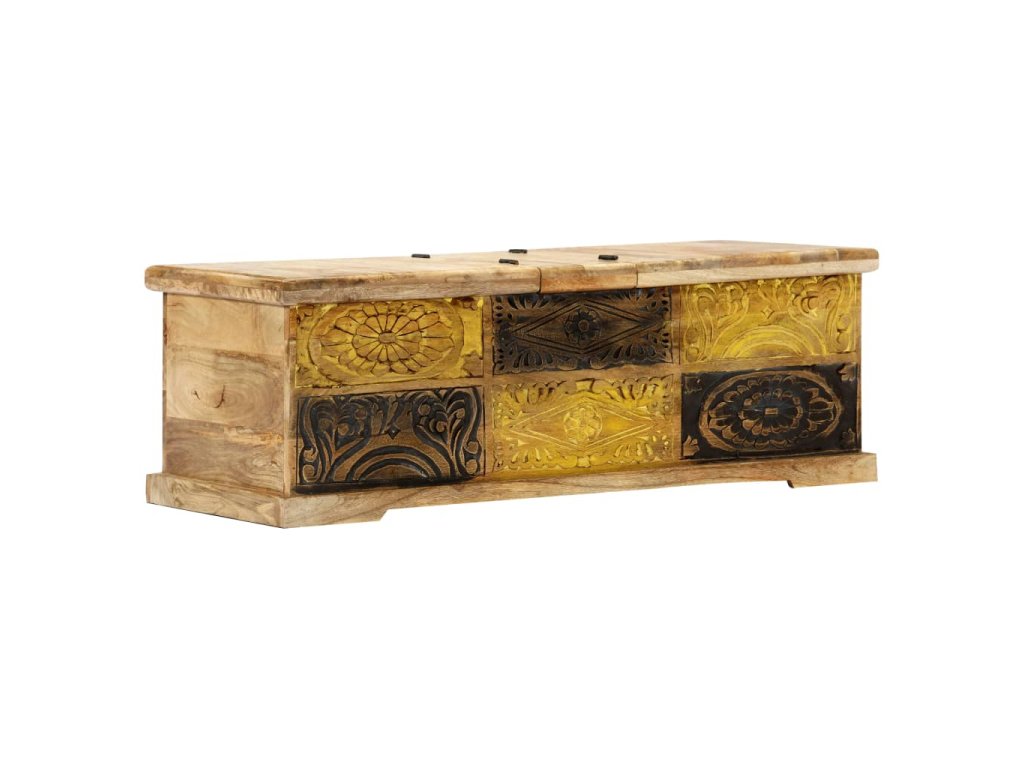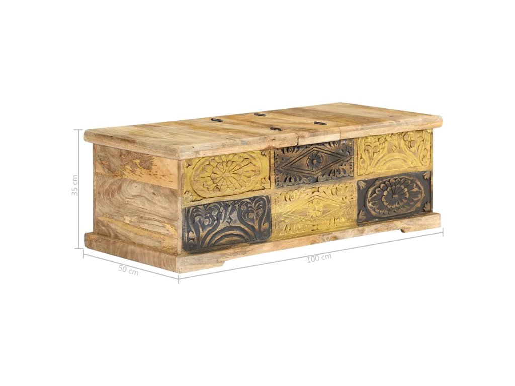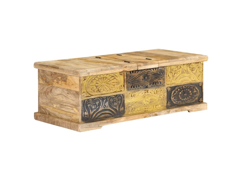 Stolek má vysoce odolnou konstrukci a je vyrobený z mangovníkového dřeva, takže je mimořádně bytelný a trvanlivý. Mangovník má husté a robustní tvrdé dřevo, jehož povrch se vyznačuje překrásnými hnědými či zlatými pruhy a liniemi. Každá fáze výrobního procesu se provádí s mimořádnou péčí, ať už se jedná o leštění, natírání anebo lakování. Za 2 výklopnými dveřmi se skrývá rozlehlý úložný prostor, který je jako dělaný k zorganizování vašich multimediálních zařízení, knížek, časopisů a různých dalších maličkostí, které chcete mít na dosah ruky. Konferenční stolek lze mimo jiné použít také jako odkládací stolek, úložnou truhlu apod.