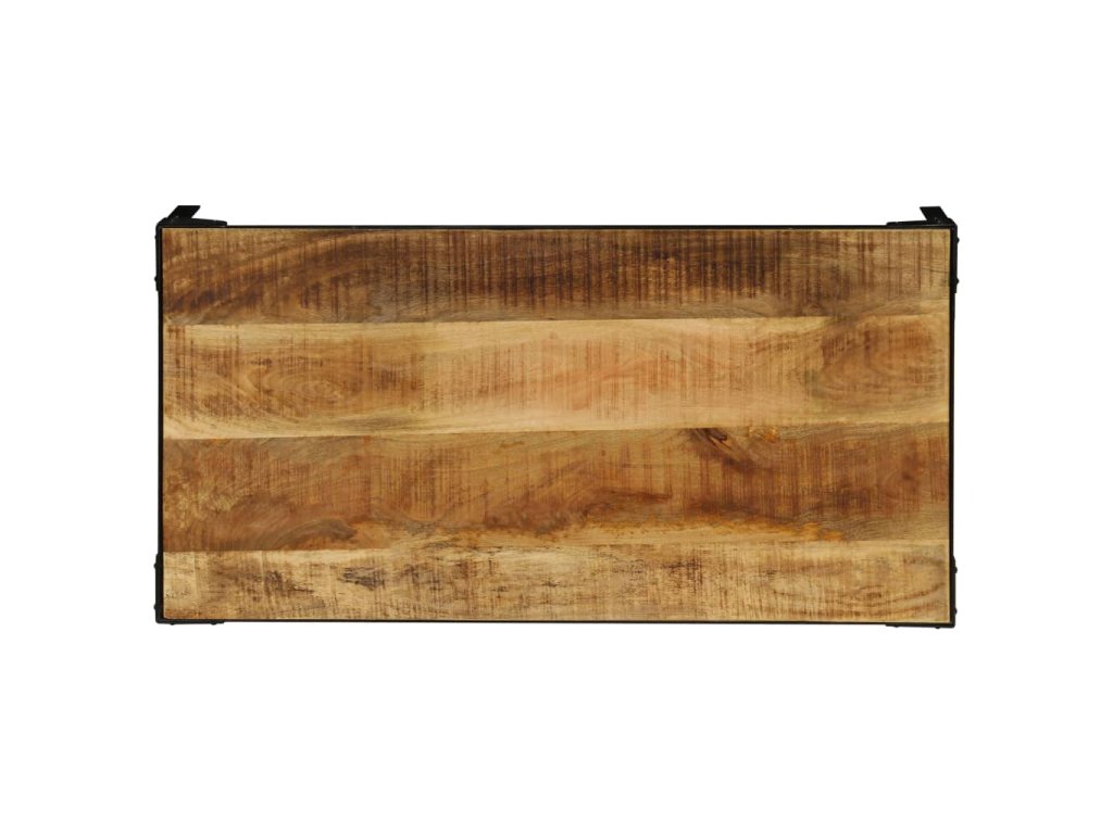 - Materiál: masivní hrubé mangovníkové dřevo + ocelový rám s práškovým nástřikem