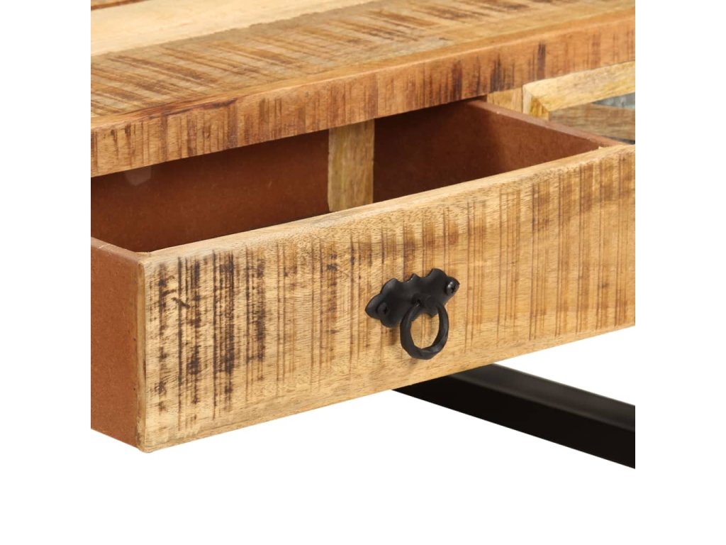 Tento praktický konferenční stolek je ideální k uschování multimediálních zařízení, knih, časopisů nebo drobných předmětů, které chcete mít neustále po ruce. Stolek má robustní nohy z pozinkované oceli a je zhotovený z mangovníkového dřeva, takže je mimořádně odolný. Mangovníkové dřevo je husté a pevné tvrdé dřevo, které má na povrchu krásnou hnědou nebo zlatou kresbu. Každý krok výrobního procesu, ať už je to leštění, natírání nebo lakování, se provádí s tou největší péčí.
