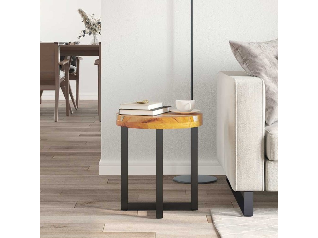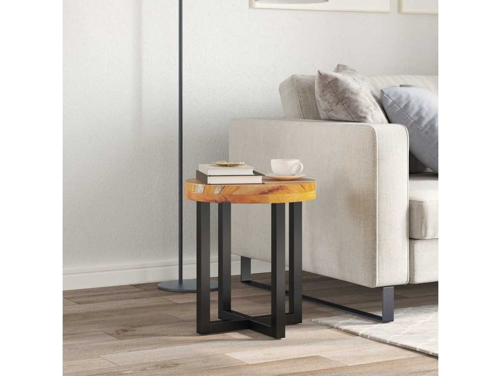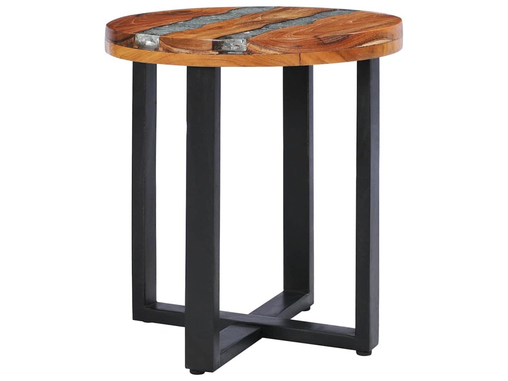 Tento jedinečný konferenční stolek, vyrobený z masivního teakového a mangovníkového dřeva a zdobený průhledným polyresinem, vyzařuje rustikální kouzlo, kterým zaujme na první pohled. Jeho kulatá deska vám poskytne stabilní a pevnou plochu, kam si můžete pokládat své nápoje, vázy, mísy s ovocem a různé dekorace. Konferenční stolek lze taktéž použít jako odkládací stolek.