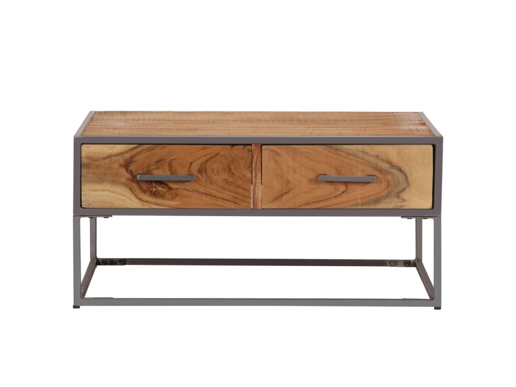 Starožitně vyhlížející stolek k pohovce je vyroben z masivního akáciového dřeva, jehož leštěný a lakovaný povrch mu dodává rafinovaný vzhled. Řemeslné zpracování a vytříbená kresba dřeva činí každý kus nábytku zcela výjimečným a lehce odlišným od ostatních. Stolek do obýváku je vyveden v industriálním stylu a je celý ručně dělaný, přičemž každá fáze výrobního procesu byla provedena s mimořádnou péčí, ať už šlo o leštění anebo lakování. Odkládací stolek disponuje 2 zásuvkami, které vám poskytnou spoustu prostoru k uspořádání vašich multimediálních zařízení, knížek a všelijakých dalších věcí.