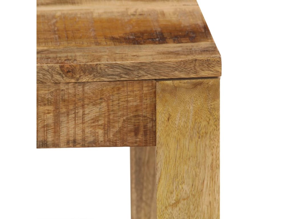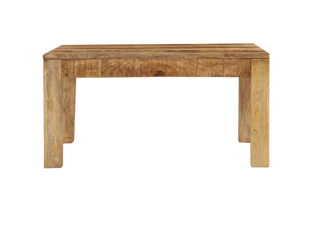 Stolek ke gauči je vyroben z masivního hrubého mangovníkového dřeva, které je pevné, stabilní a odolné a zároveň i krásně vypadá. Zručným řemeslným zpracováním bylo dosaženo velkolepého retro stylu tohoto nábytku. Každý krok výrobního procesu je prováděn s největší péčí, ať už se jedná o leštění, natírání nebo lakování. Díky překrásné kresbě dřeva je každý kus nábytku jedinečný a lehce odlišný od všech ostatních. Pevný dřevěný stolek je ideální k odkládání jídla a nápojů, dekorativních předmětů, knih apod.
