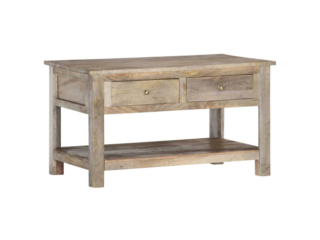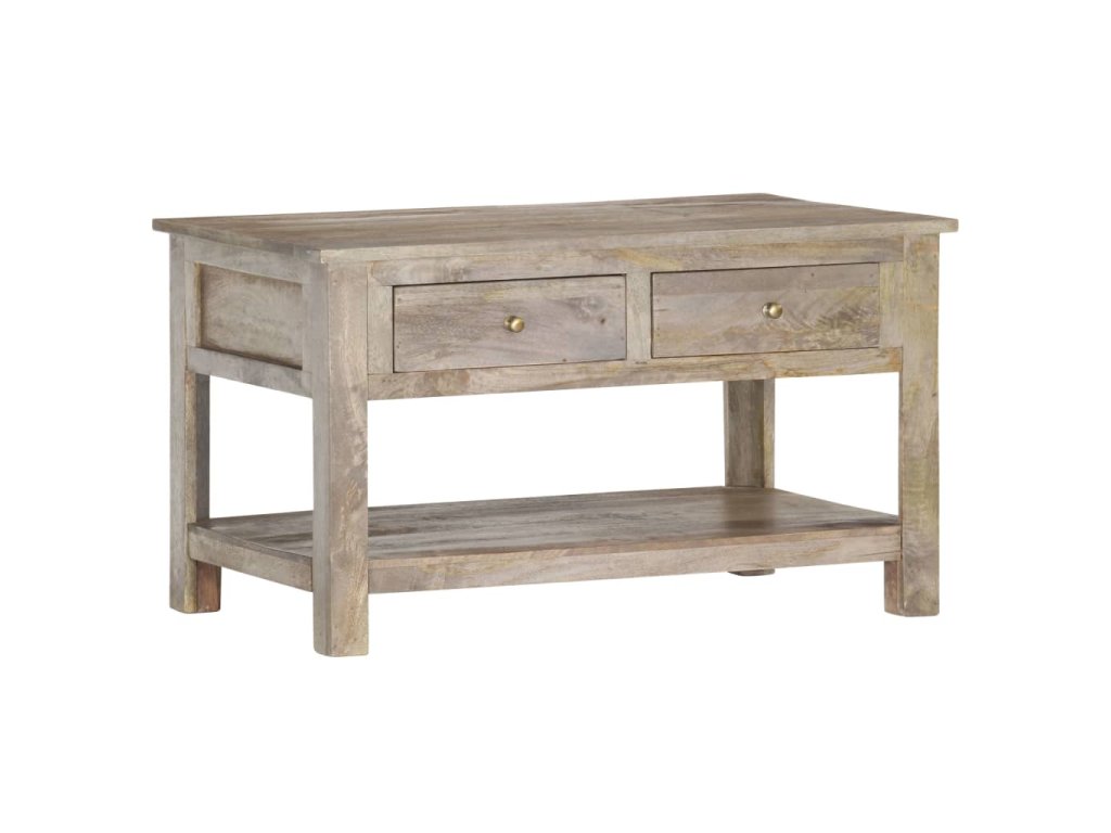 Konferenční stolek s překrásným designem je vyrobený z masivního mangovníkového dřeva, a proto je velmi pevný a odolný. Masivní horní deska nabízí stabilní a bezpečnou plochu, kam si můžete odkládat nápoje nebo vystavovat vázy, mísy s ovocem a jiné ozdoby. Ve stolku rovněž najdete 1 otevřenou poličku a 2 praktické zásuvky, které vám poskytnou spoustu prostoru k uložení vašich multimediálních zařízení, knížek a nejrůznějších další věcí. Každá fáze výrobního procesu se provádí s největší péčí, ať už se jedná o leštění, natírání anebo lakování.
