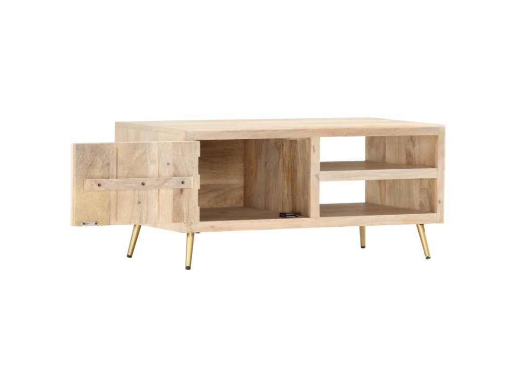 Odkládací stolek je vyrobený z masivního mangovníkového dřeva, které je nejen odolné a stabilní, ale zároveň také krásně vypadá. Zručné zpracování navíc podtrhuje jeho líbivý retro styl. Každý krok výrobního procesu je prováděný s mimořádnou péčí, ať už se jedná o leštění, natírání anebo lakování. Řemeslná výroba a nádherná kresba dřeva dávají každému kusu nábytku jedinečný charakter, jímž se lehce liší od všech ostatních. Stolek má pevnou, stabilní desku, na kterou si můžete odkládat nápoje či občerstvení nebo si na ni postavit mísy s ovocem a nejrůznější ozdoby. Sestavení konferenčního stolku je snadné.