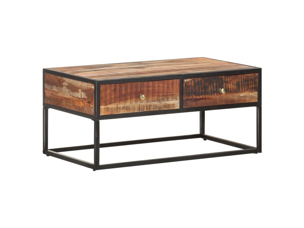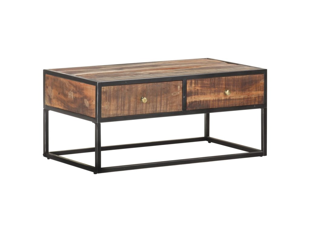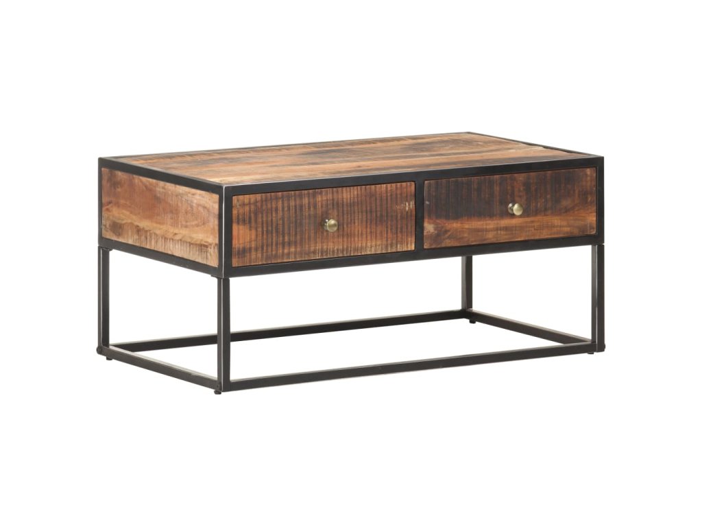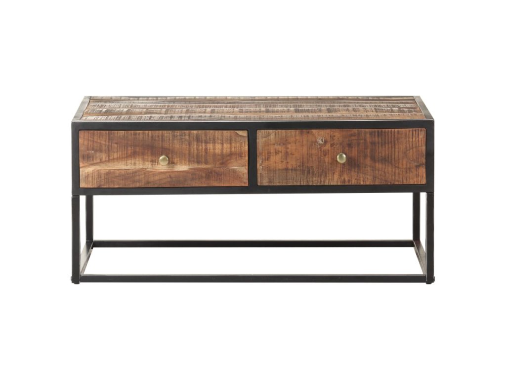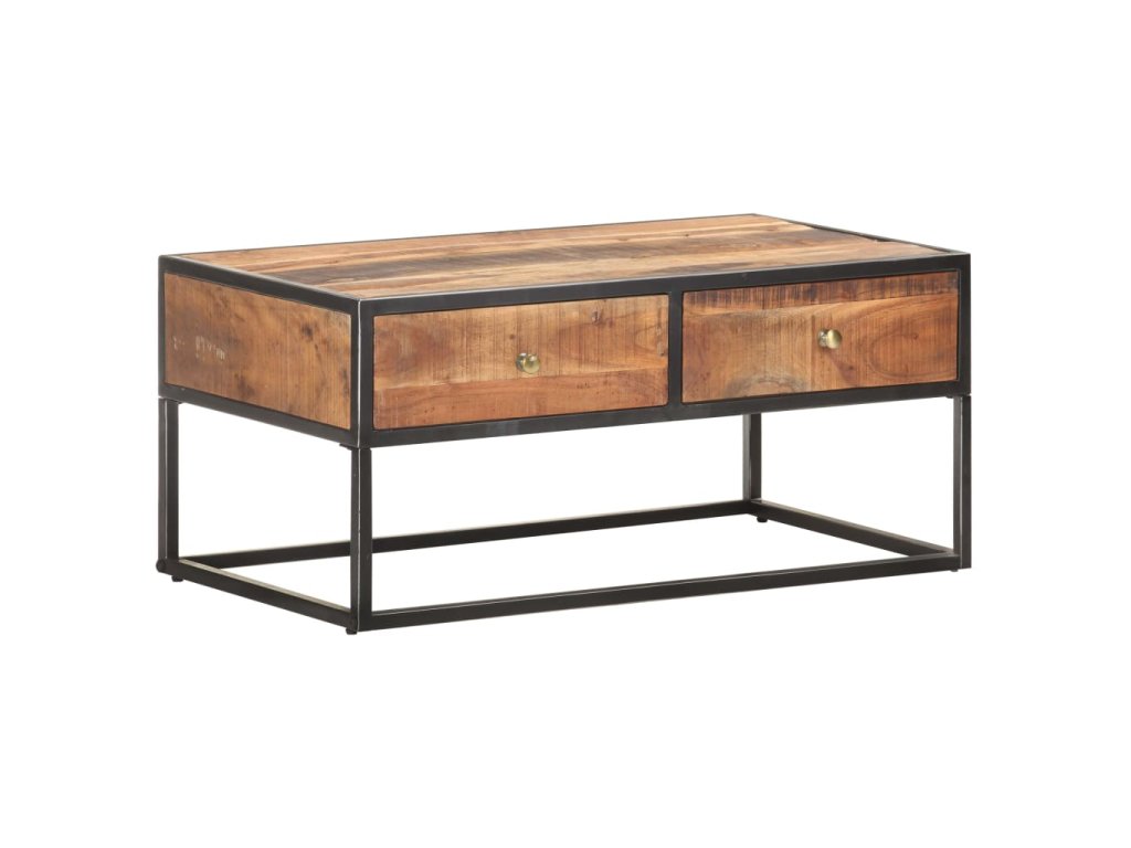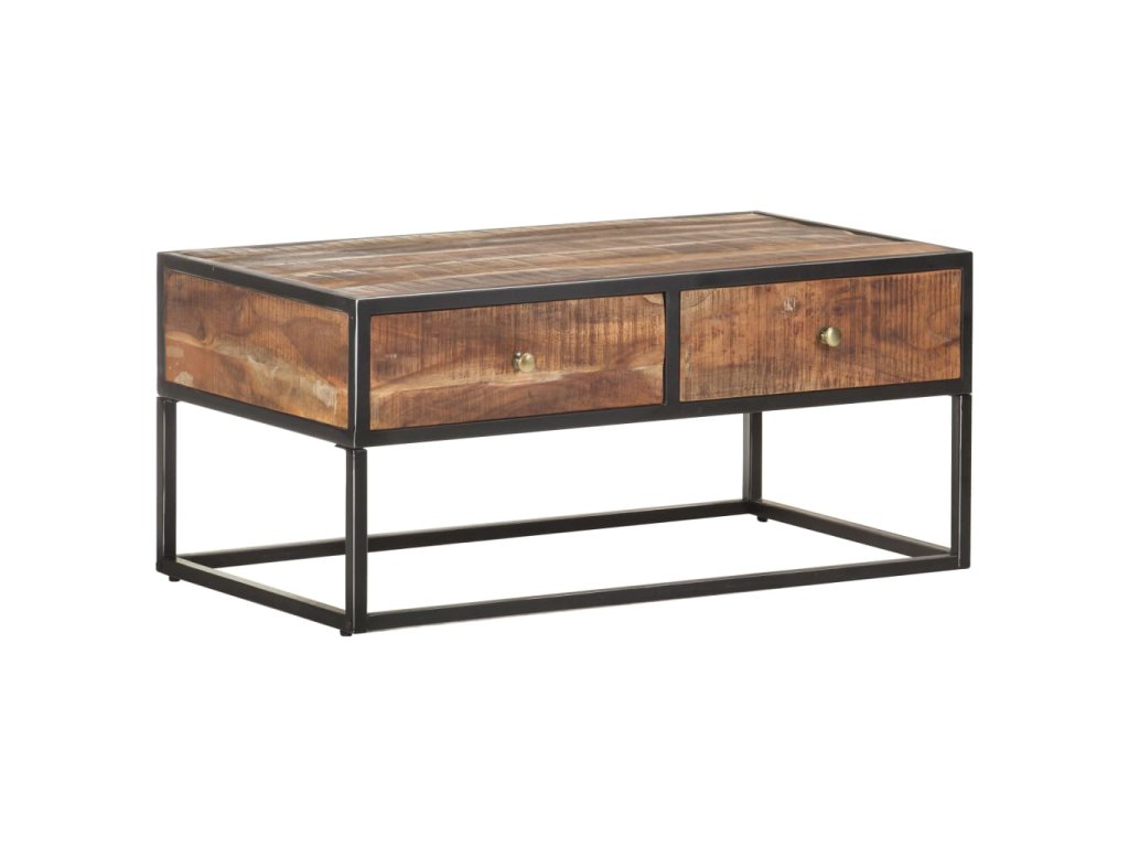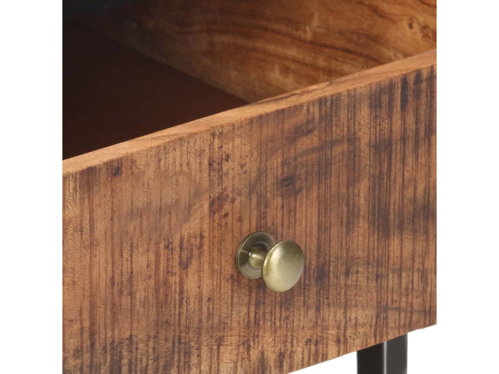 Stolek k pohovce je vyrobený z masivního hrubého akáciového dřeva, je tedy velice stabilní a odolný. Zručné zpracování a překrásná kresba dřeva dávají každému kusu nábytku jedinečný charakter, kterým se lehce liší od všech ostatních. Stolek má 2 zásuvky, takže vám poskytne spoustu místa pro přehledné uspořádání nejrůznějších věcí. A co víc, železná základna mu přidává na robustnosti.