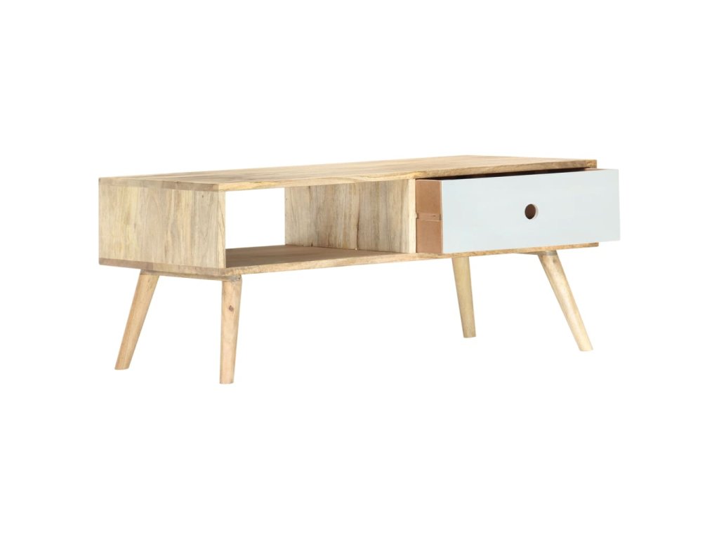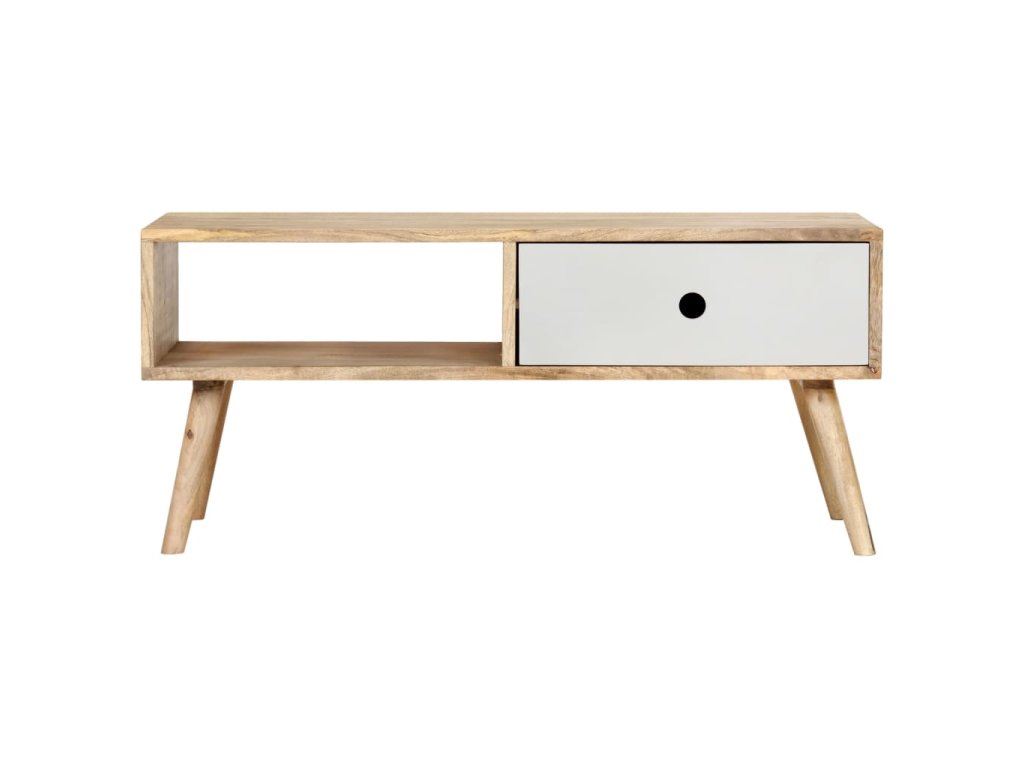 Konferenční stolek je ručně vyrobený z masivního mangovníkového dřeva, které je nejen pevné a stabilní, ale zároveň také krásně vypadá. Zručné řemeslné zpracování přispívá k jeho okázalému retro stylu. Každá fáze výrobního procesu je prováděná s největší pečlivostí, ať už se jedná o leštění anebo lakování. Rukodělná výroba a překrásná kresba dřeva dávají každému kusu nábytku jedinečný charakter, jímž se lehce liší od všech ostatních. Ve stolku je 1 zásuvka a 1 polička, kde najdete spoustu úložného prostoru k přehlednému odkládání všech důležitých věcí, které si přejete mít po ruce. Montáž našeho konferenčního stolku je snadná.
