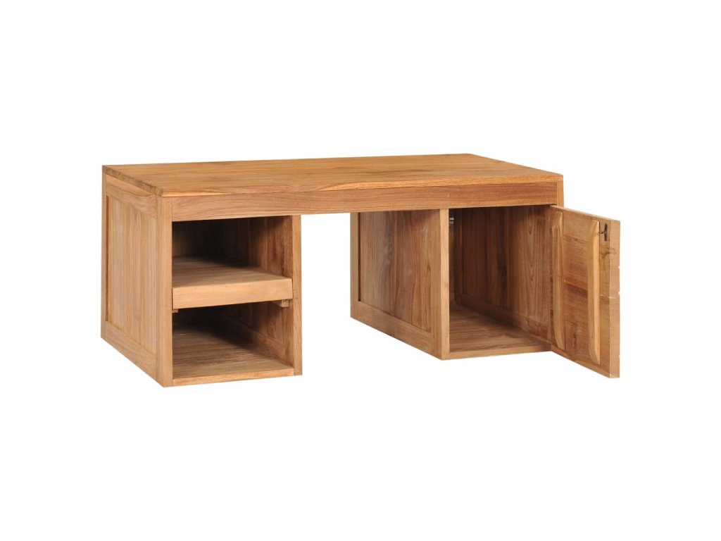 Tento rustikální konferenční stolek je zhotovený z masivního teakového dřeva, má tedy pevnou a odolnou konstrukci. Přírodním olejem ošetřený povrch je hladký, jen tak se nepoškrábe a zároveň vám usnadní čištění a pravidelnou péči. Po pravé straně má 1 skříňku pro uschování různých drobností, zatímco 2 otevřené přihrádky na levé straně vám poslouží k uspořádání multimediálních zařízení, herních konzolí, CD a časopisů.