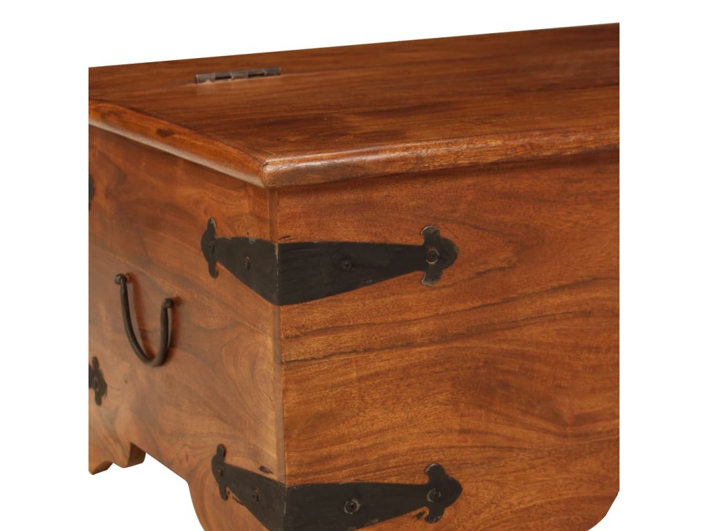 Stolek je zhotovený z masivního akáciového dřeva s medovou povrchovou úpravou a je mimořádně odolný a stabilní. Akáciové dřevo je tvrdé dřevo s krásnou strukturou, které vydrží mnoho let. Podobné akáciovému dřevu, známé jako růžové dřevo nebo palisandr, se vyznačuje svou bohatou strukturou. Horní část má jedny dvířka, která lze odklopit pro snadné uschování vašich věcí. Dřevěná struktura podtrhuje vintage vzhled tohoto konferenčního stolku. Každá fáze výrobního procesu se provádí s největší péčí, ať už se jedná o leštění, natírání nebo lakování. Sestavení je snadné.