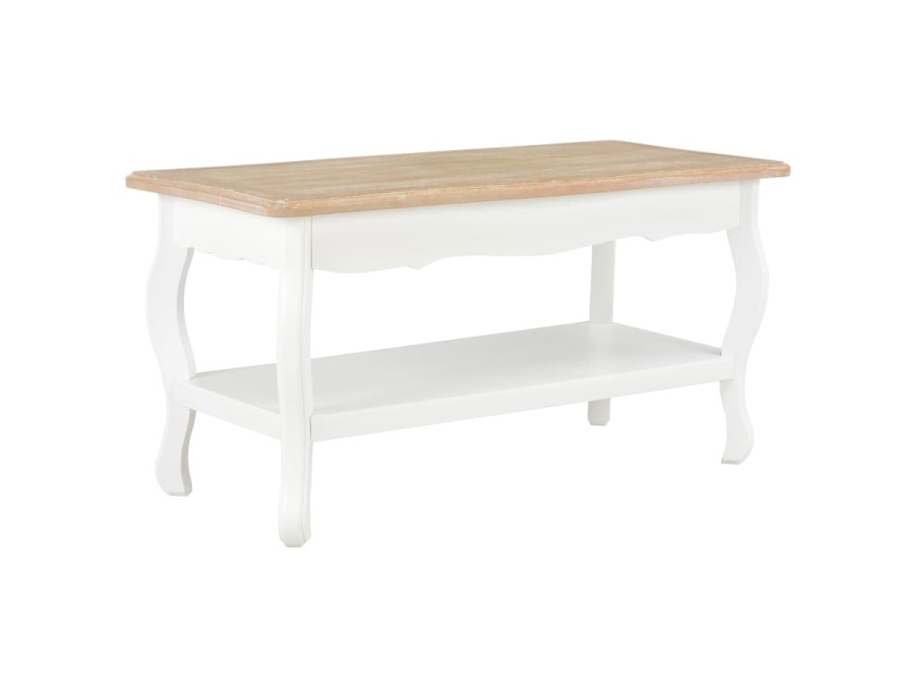 Stolek k sedací soupravě je vyrobený z MDF a masivního borového dřeva, a proto je mimořádně robustní a odolný. Tento konferenční stolek s 1 poličkou vám poskytne dostatek prostoru pro vaše časopisy, knihy, dálková ovládání a další drobnosti, které chcete mít v dosahu ruky. Design stolku navíc do vaší domácnosti vnese francouzský styl. Sestavení akcentového stolku je snadné.