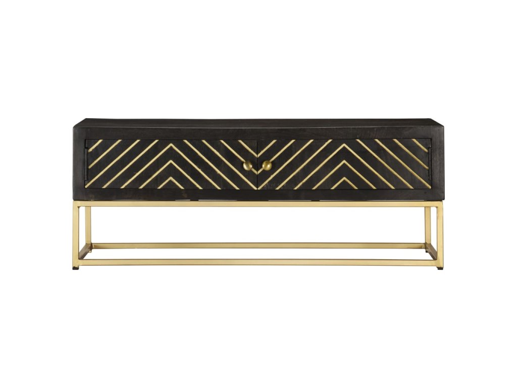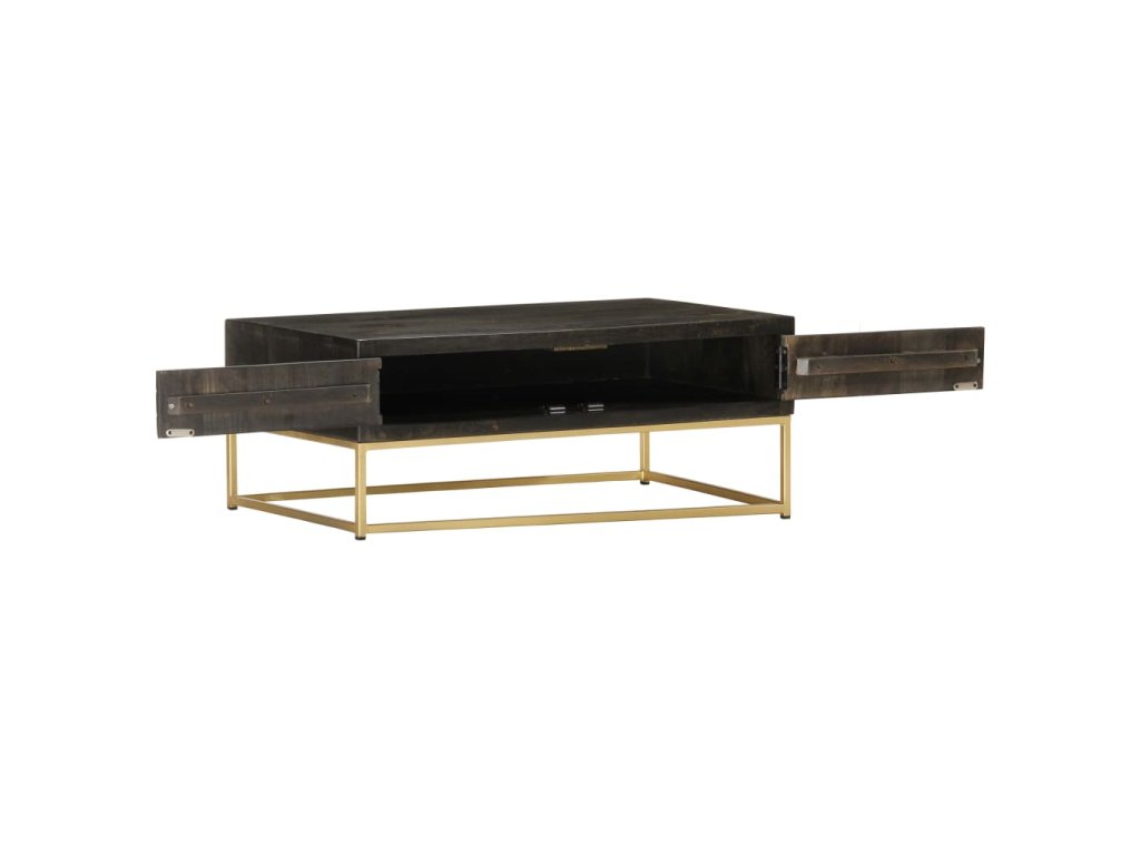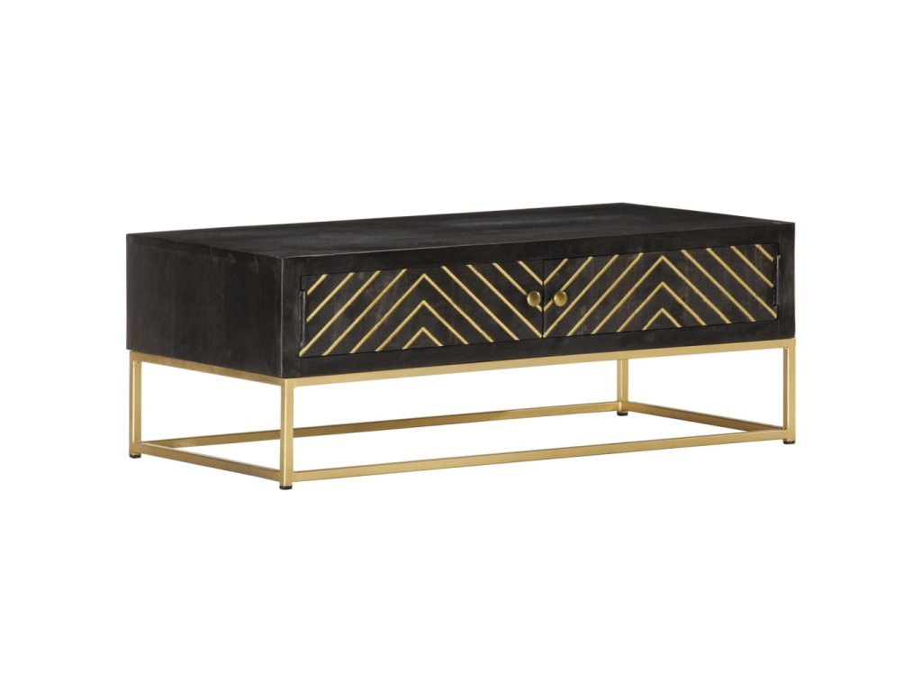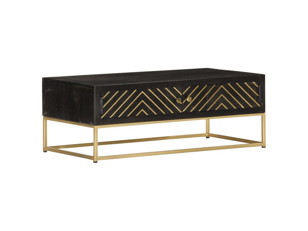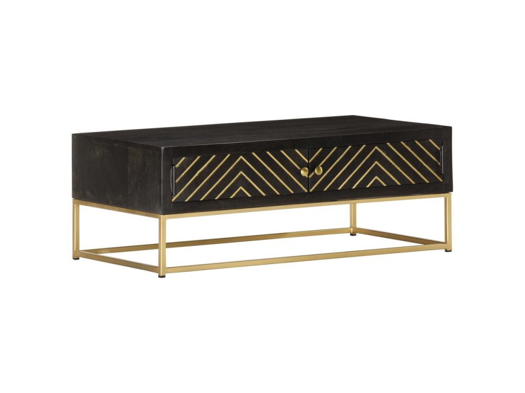 Konferenční stolek černozlatý 90 x 50 x 35 cm masivní mangovník 286515