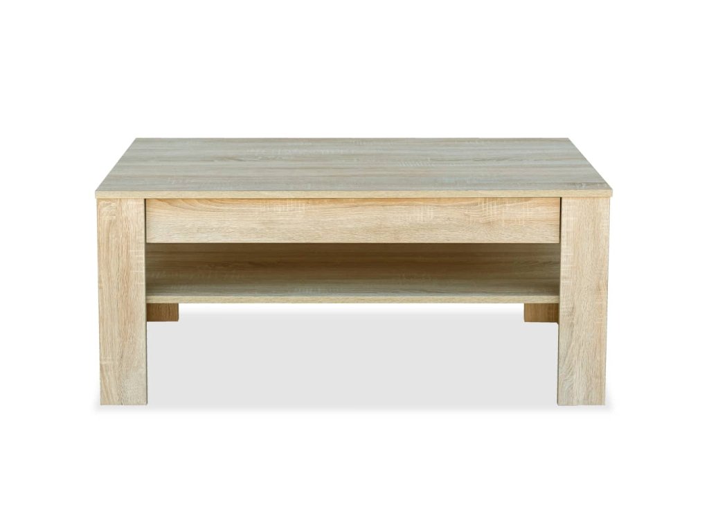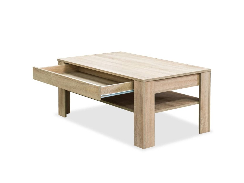 Je vyroben z dřevotřísky s PVC hranami a je stabilní a odolný. Zásuvka a police pod ní poskytují dostatek úložného prostoru na ukládání časopisů, knih a dalších věcí, které chcete mít na dosah, a zároveň ještě více přispívají k celkovému modernímu vzhledu stolku.