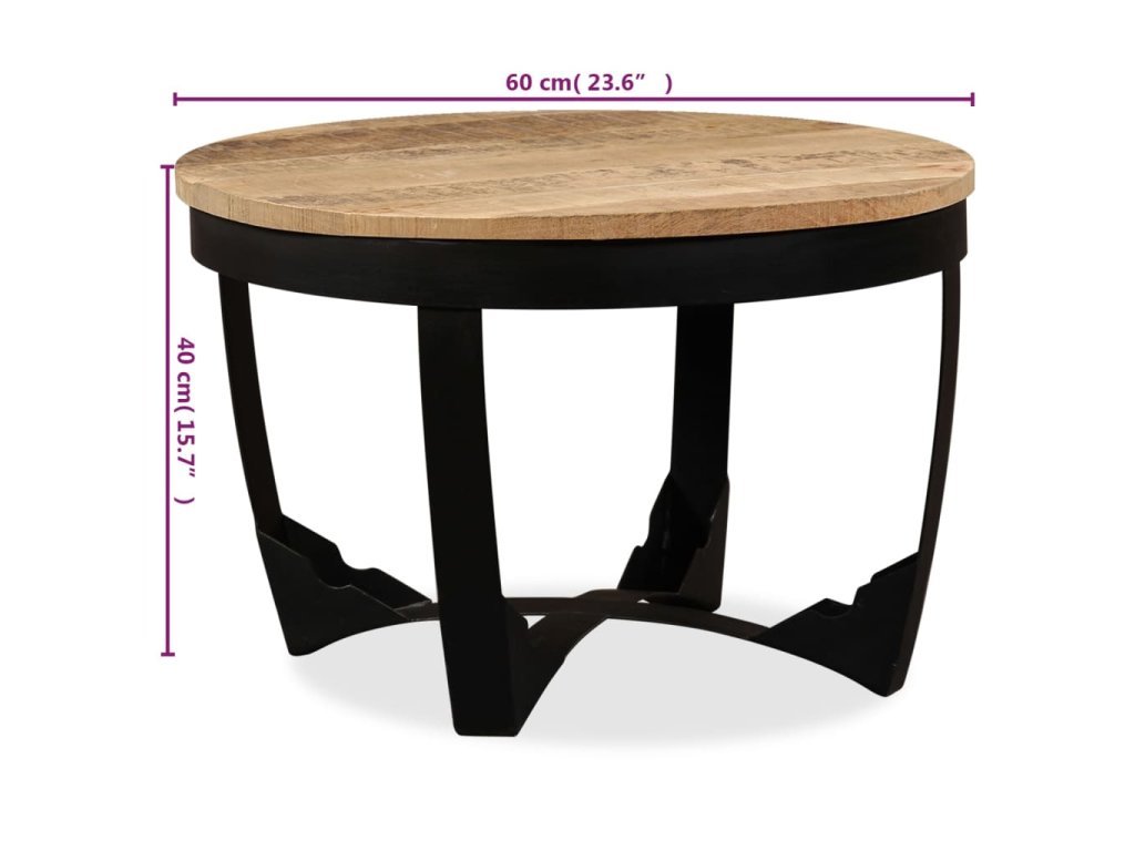 - Materiál: masivní hrubé mangovníkové dřevo + rám z oceli s práškovým nástřikem