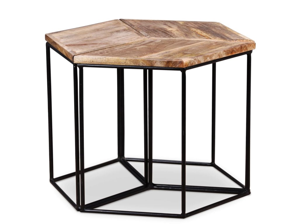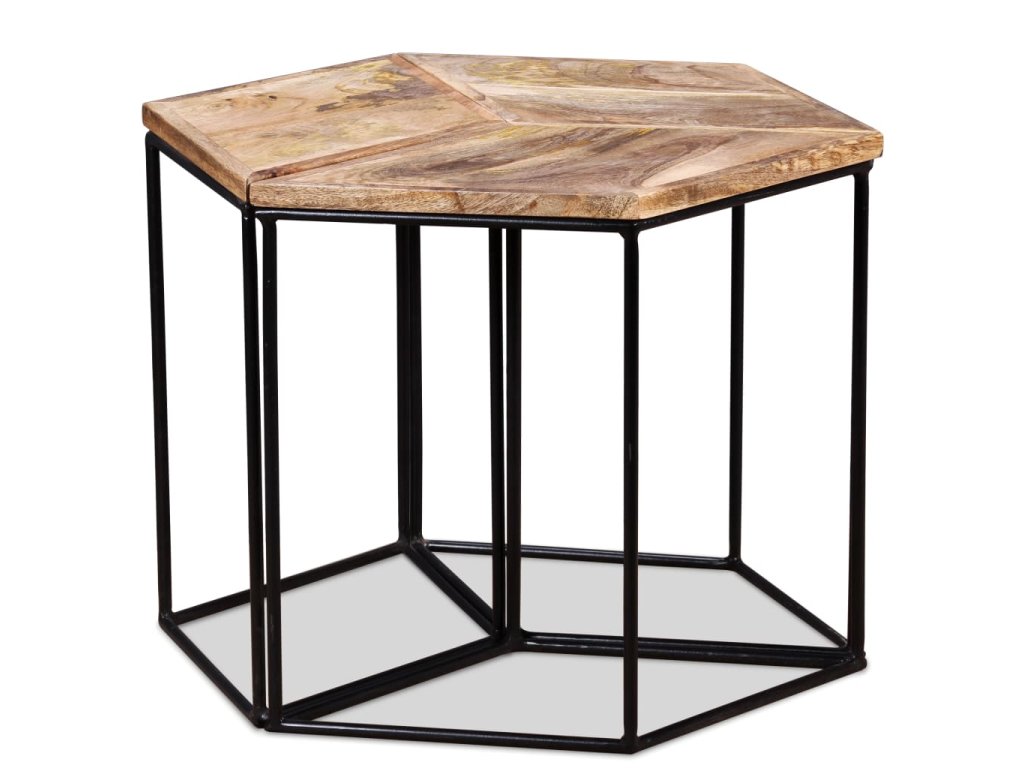 Konferenční stolek je ručně vyrobený z masivního mangovníkového dřeva, které je robustní a stabilní, a řemeslné zpracování přispívá k jeho velkolepému retro stylu. Každá fáze výrobního procesu se provádí s největší péčí, ať už se jedná o leštění nebo lakování. Vzhledem k řemeslnému zpracování a krásné kresbě dřeva je každý kus nábytku jedinečný a lehce se liší od ostatních. Rám je vyrobený z odolného železa, stolky jsou tudíž stabilní a bytelné.