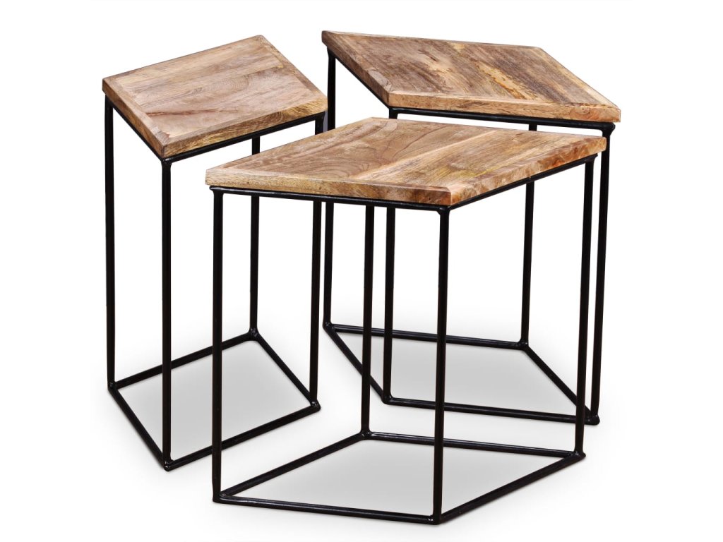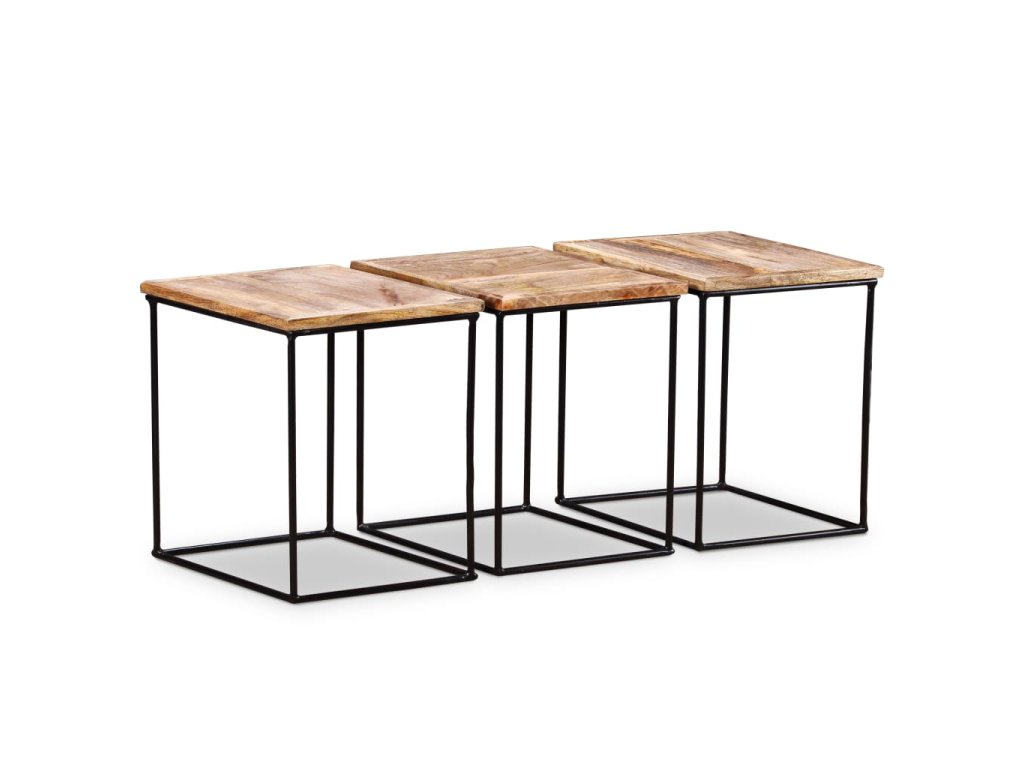 Tento dřevěný konferenční stolek je nadčasový doplněk pro vaše bydlení, které zkrášlí svým vintage šarmem. Modulární konferenční stolek se skládá ze 3 menších stolů, které lze používat společně jako konferenční stolek nebo samostatně jako odkládací stolky, noční stolky nebo stoličky.
