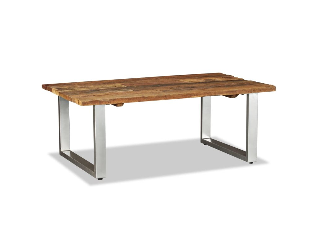 Konferenční stolek je vyrobený z recyklovaného masivního dřevo. Hrubý vzhled dřeva a precizní zpracování jen podtrhují krásný retro vzhled stolku. Každému kroku řemeslné výroby je věnována náležitá péče, ať už jde o broušení či lakování. Krásná kresba dřeva dává každému kusu nábytku jedinečný a od všech ostatních kusů odlišný vzhled. Nohy stolu jsou vyrobené z odolného tepaného železa, které je zárukou pevnosti a stability. Sestavení je velmi snadné.