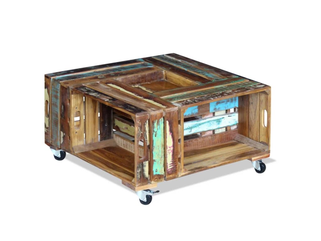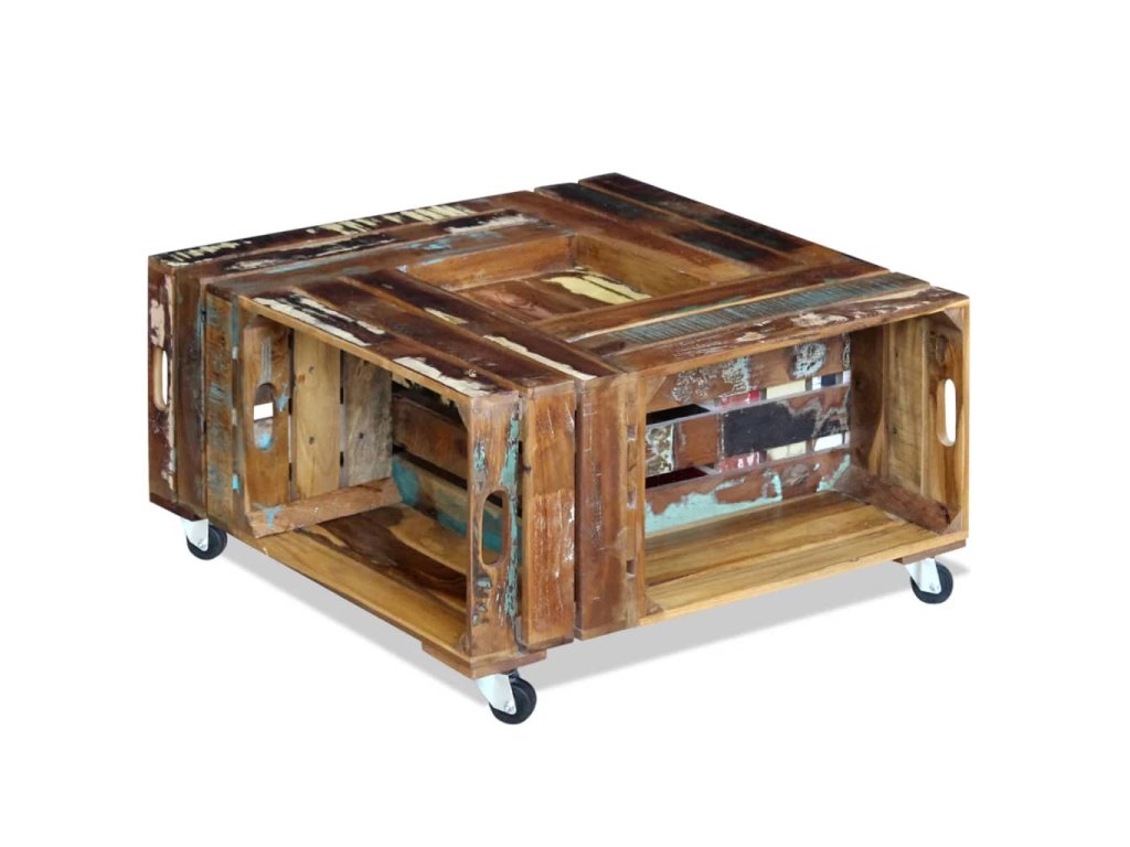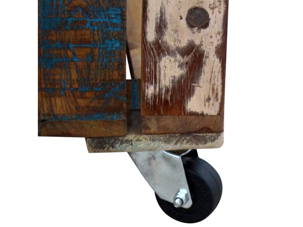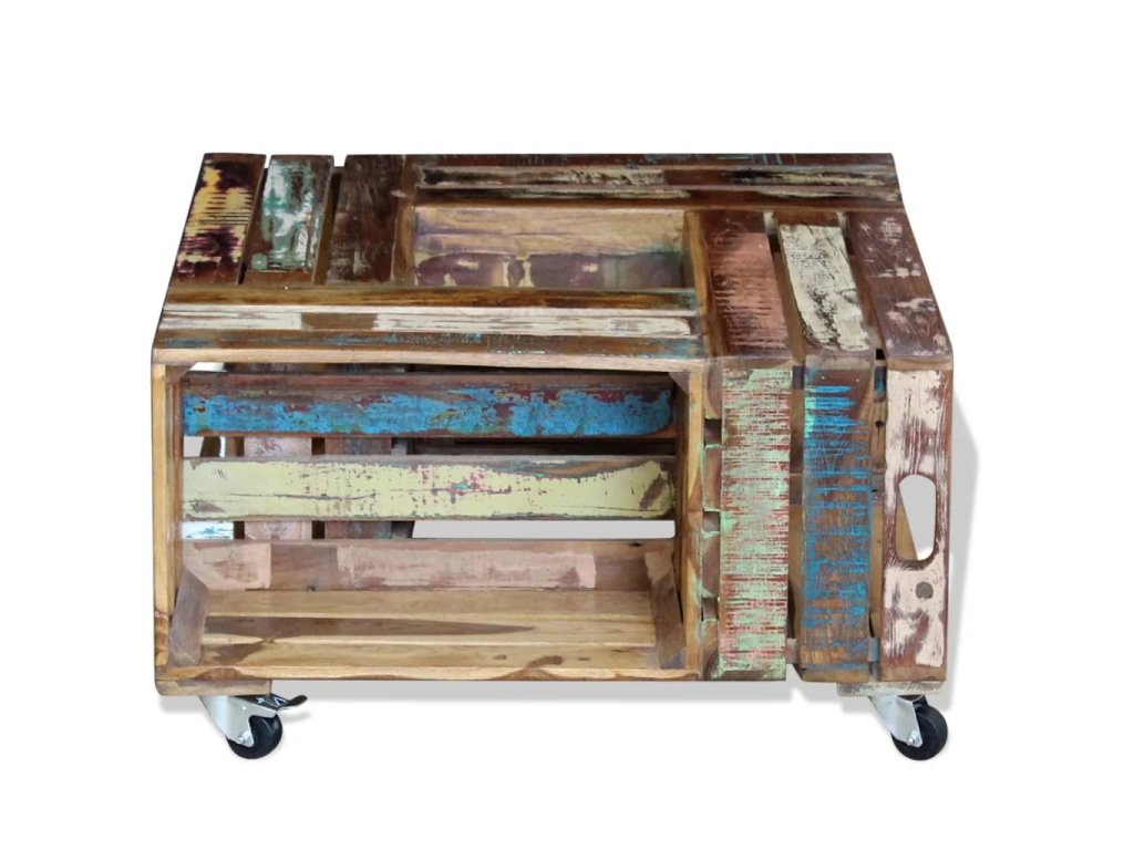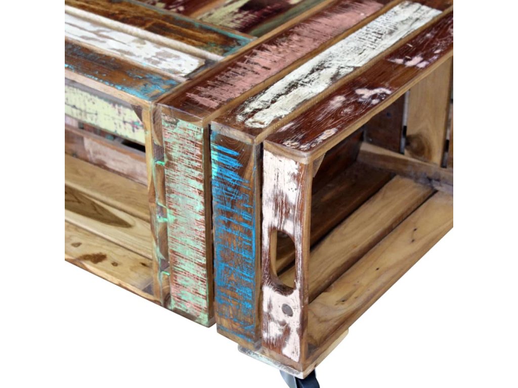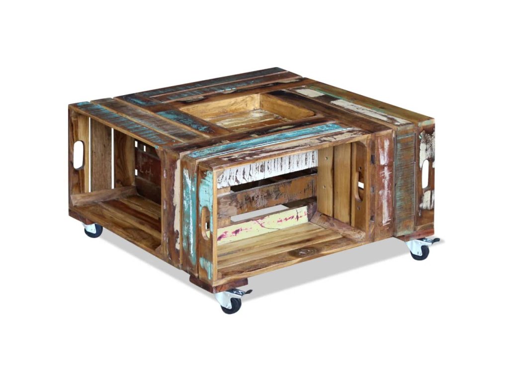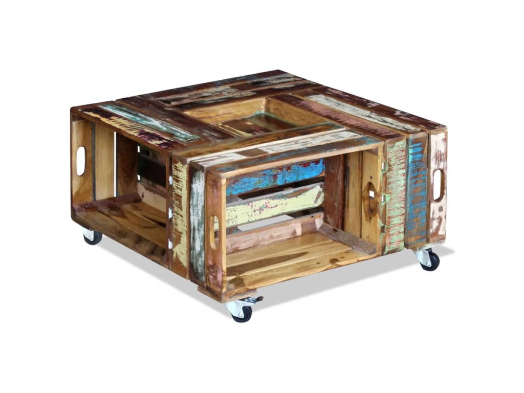 Tento konferenční stolek z recyklovaného dřeva ve vintage stylu které z něj dělá stylový doplněk do vašeho interiéru. Horní deska nabízí stabilní a bezpečný povrch, na který si můžete odložit nápoje a nebo si zde vystavit koš s ovocem, vázy či jiné dekorace. Jelikož je stolek k psacímu stolu vybavená 4 kolečky, lze ji flexibilně umístit a snadno přesouvat.