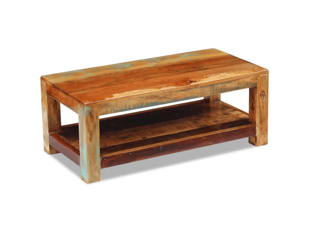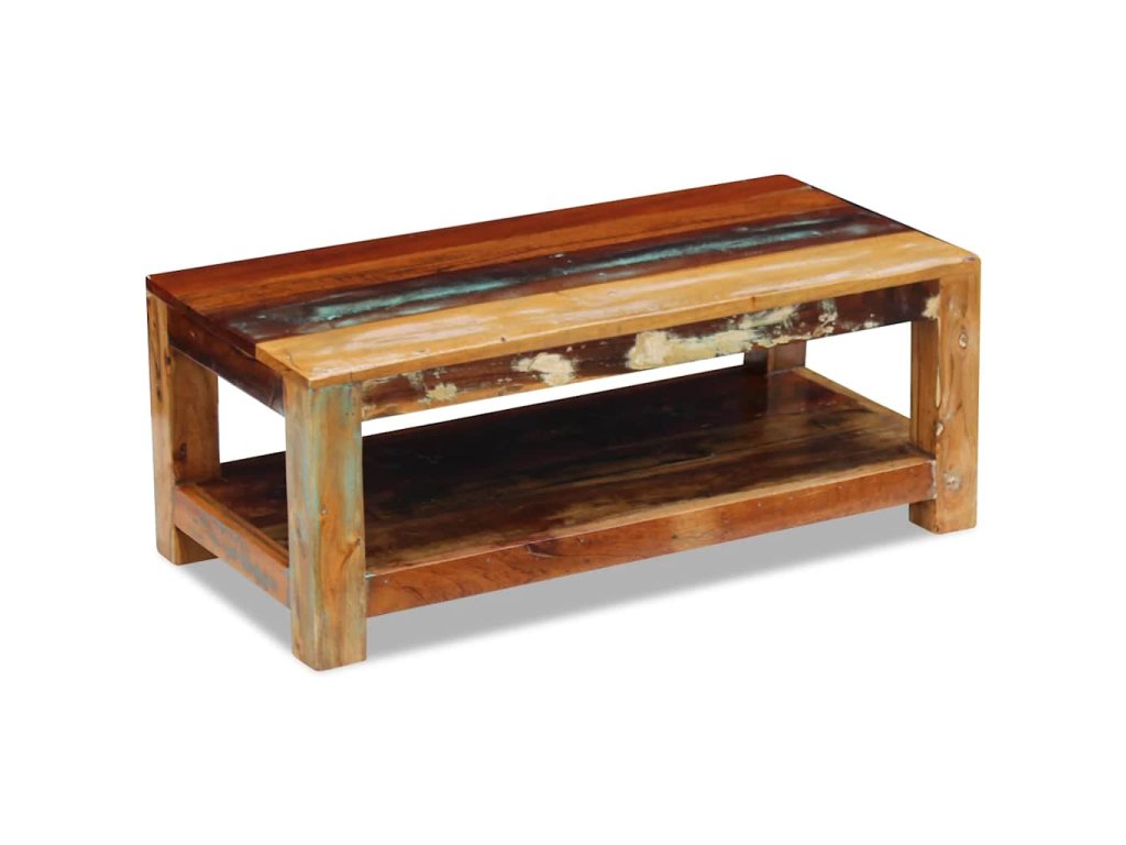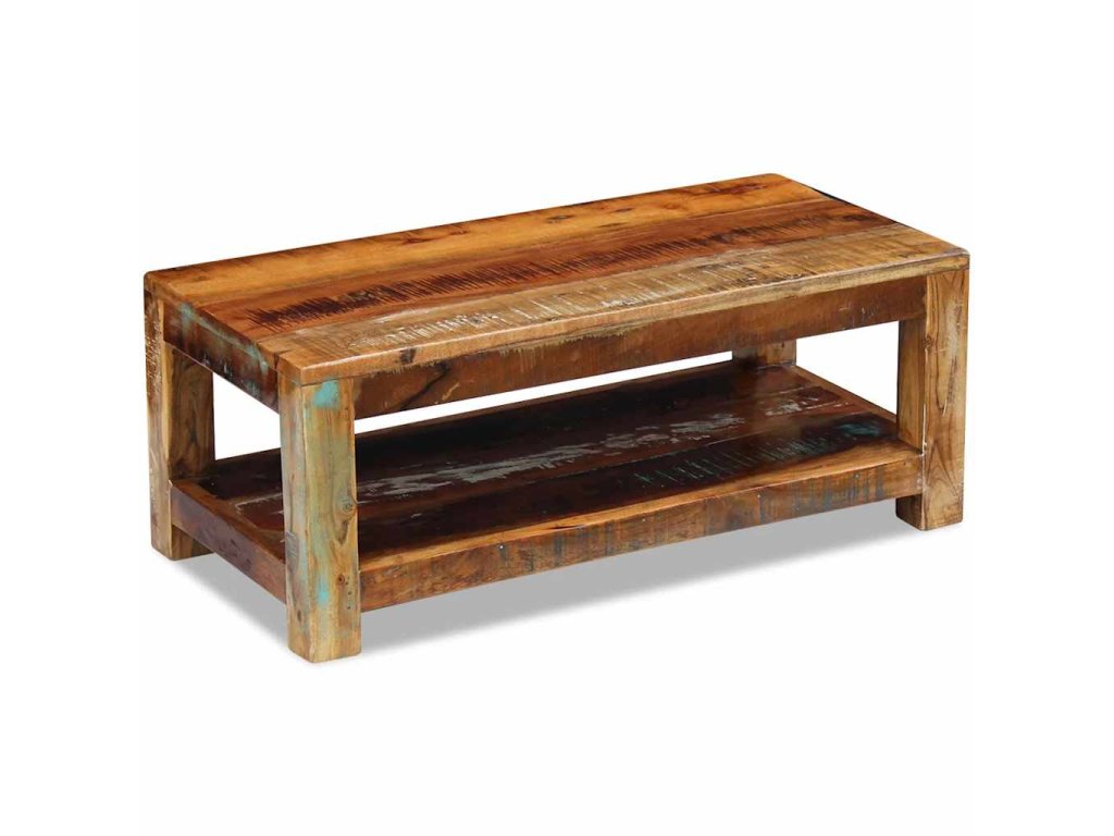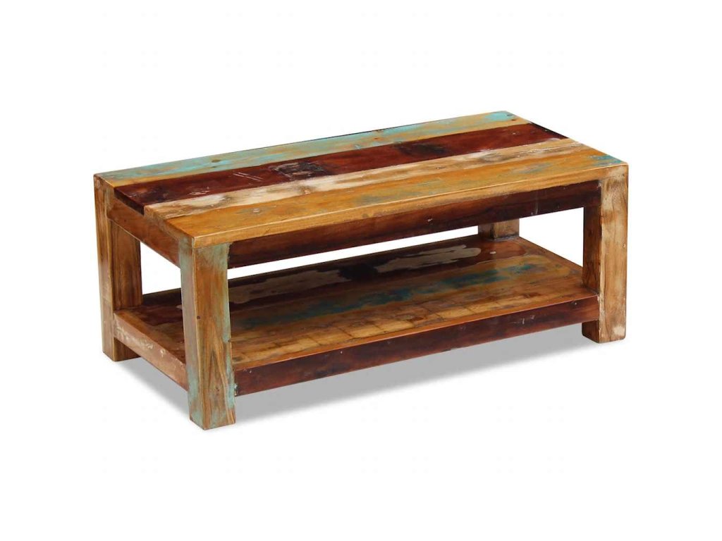 Tento z recyklovaného dřeva vyrobený konferenční stolek v retro stylu. Bude to originální kus do vašeho obýváku! Konstrukce z masivního dřeva je stabilní, takže si na ni můžete bezpečně odložit nápoje, mísy s ovocem nebo dekorativní předměty. Můžete jej také používat jako stolek ke gauči, odkládací stolek, koncový stolek konzolový stolek apod.
