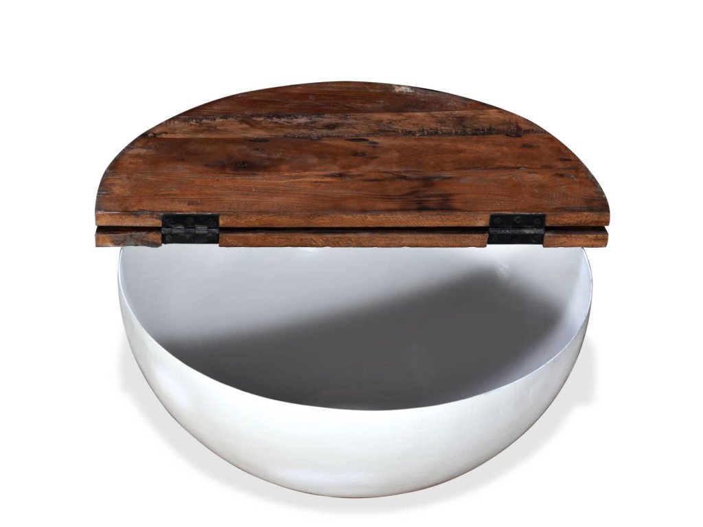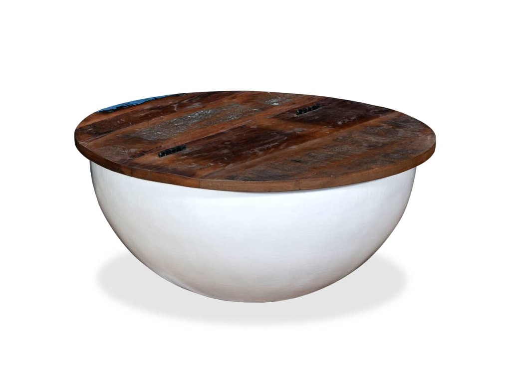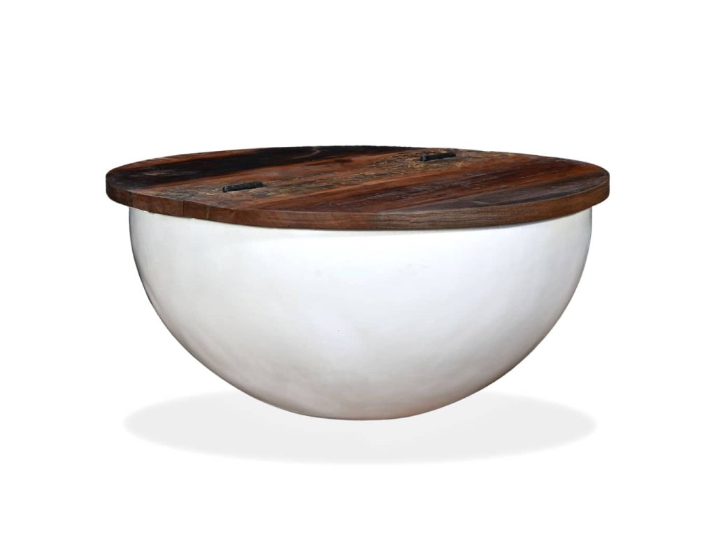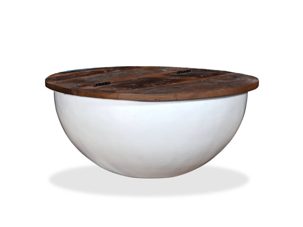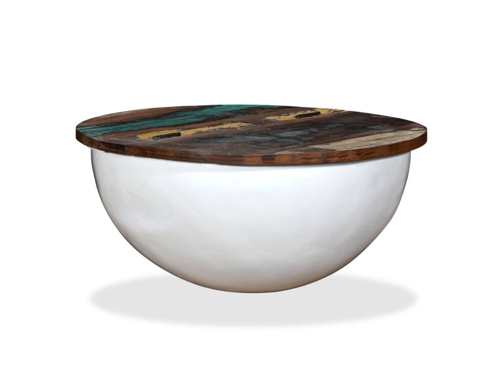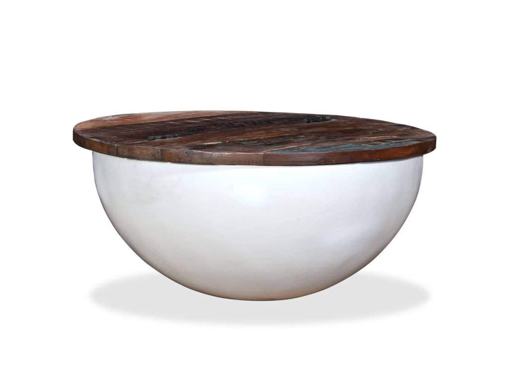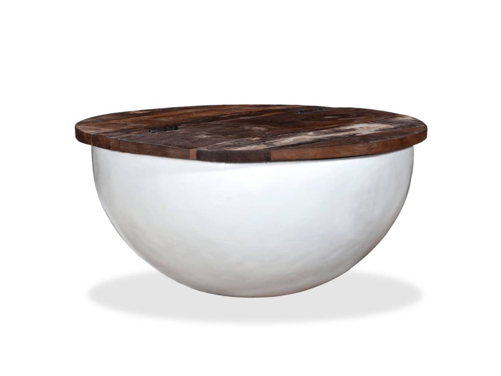 Konferenční stolek masivní recyklované dřevo bílý tvar misky 245258