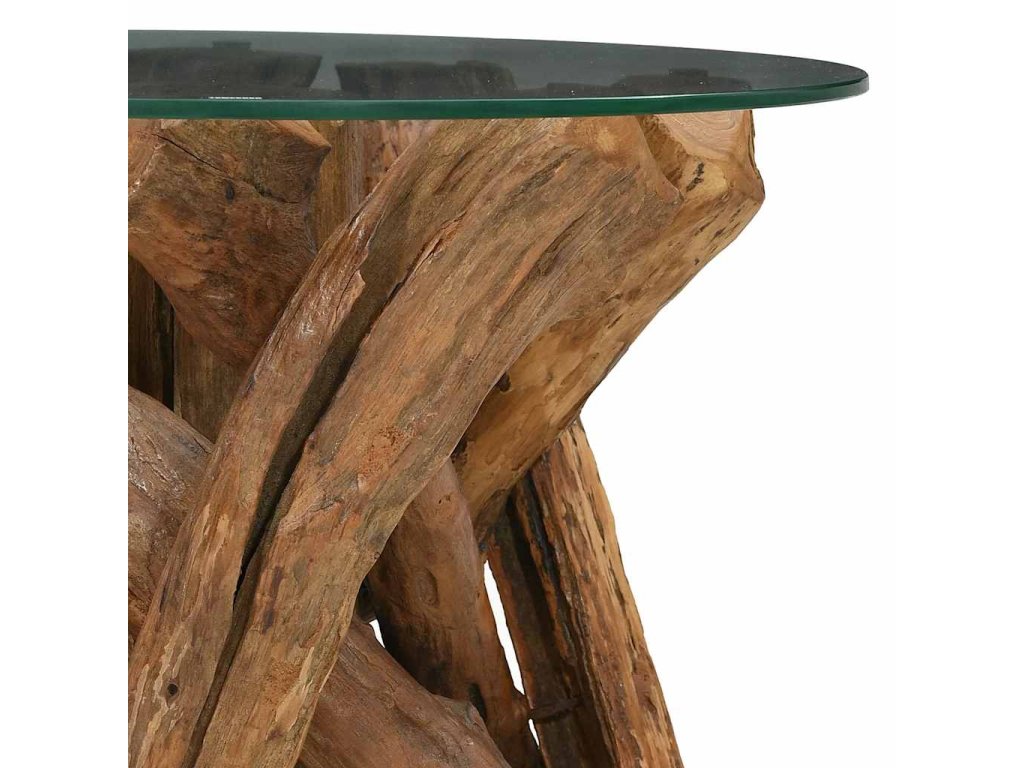 Tento úchvatný konferenční stolek, který má masivní teakovou základnu v unikátním designu, vyzařuje rustikální kouzlo a je opravdovým skvostem. Stolní deska je vyrobena ze silně tvrzeného skla, na které můžete umístit nápoje, vázy, misky s ovocem nebo ozdoby. Může být také použit jako odkládací stolek.