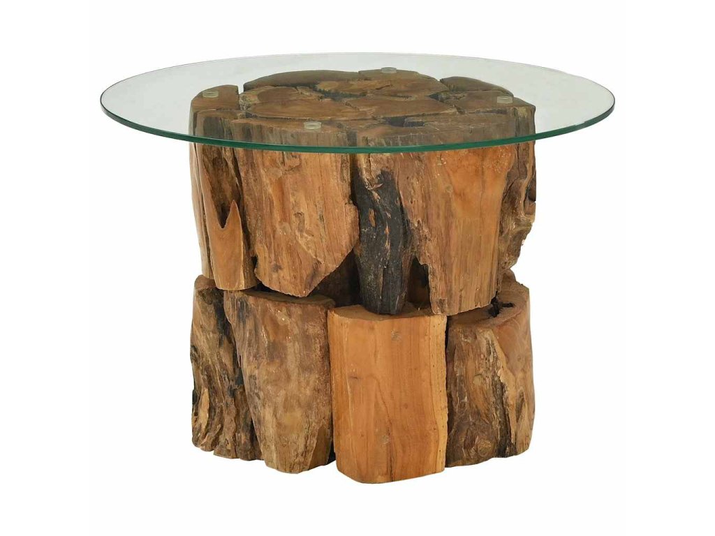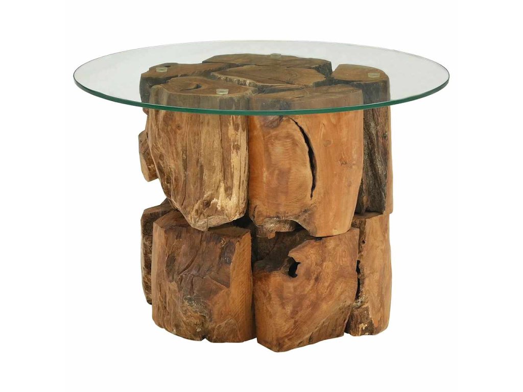 Tento výrazný konferenční stolek s podstavou z masivního teakového dřeva v jedinečném designu vyzařuje rustikální kouzlo a bude skvělým doplňkem klasických i moderních interiérů.