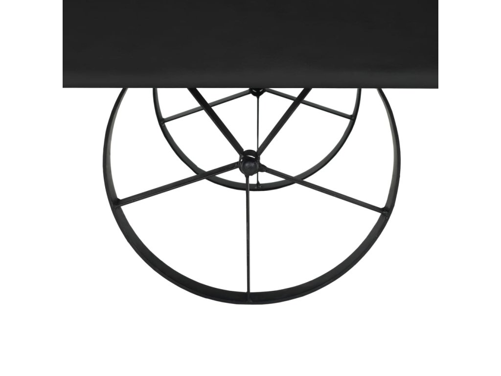 Tento odolný a překrásný stolek je vyrobený z MDF a masivního jedlového dřeva a potažený polstrovaným potahem z umělé kůže. 2 robustní kola jsou dekorativní a podtrhují industriální vzhled stolku. Stolní deska se výborně hodí k servírování nápojů nebo k vystavení váz, květináčů, košíků s ovocem a jiných dekorací. 2 malá kolečka usnadňují přemisťování stolku, kam potřebujete