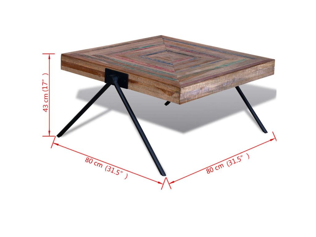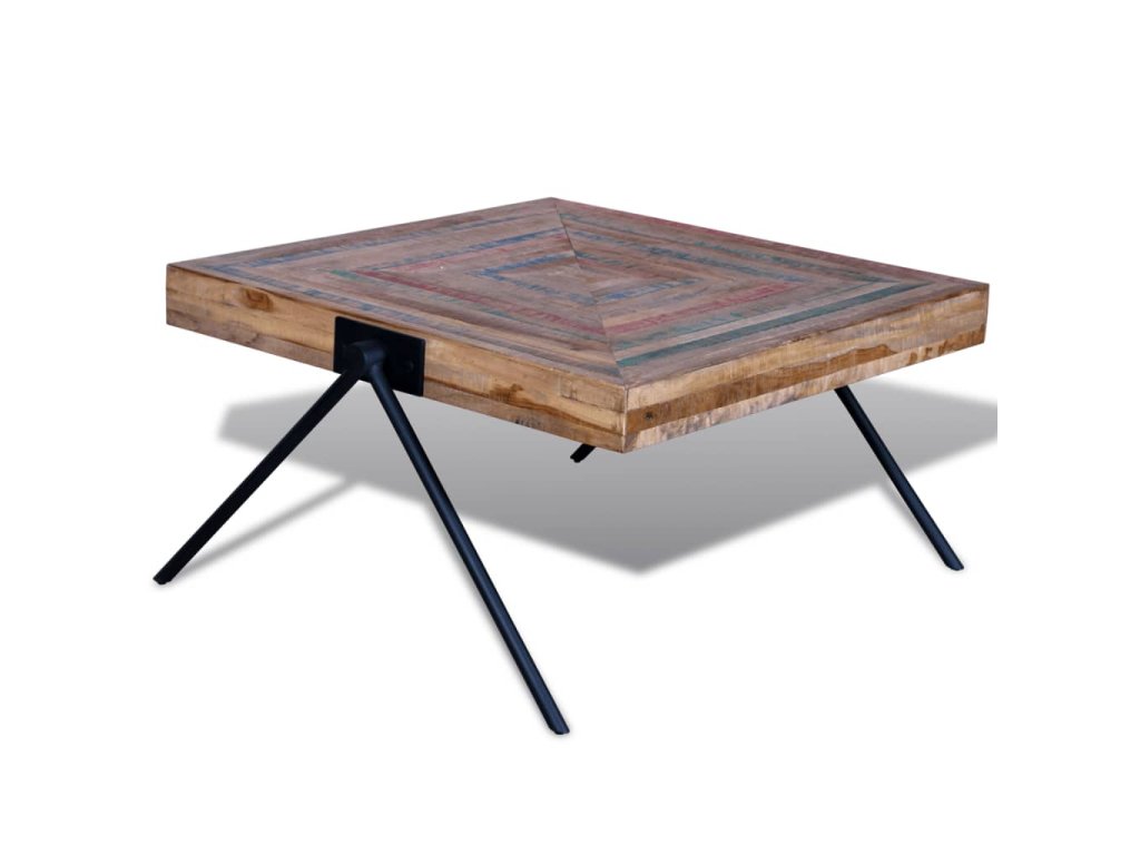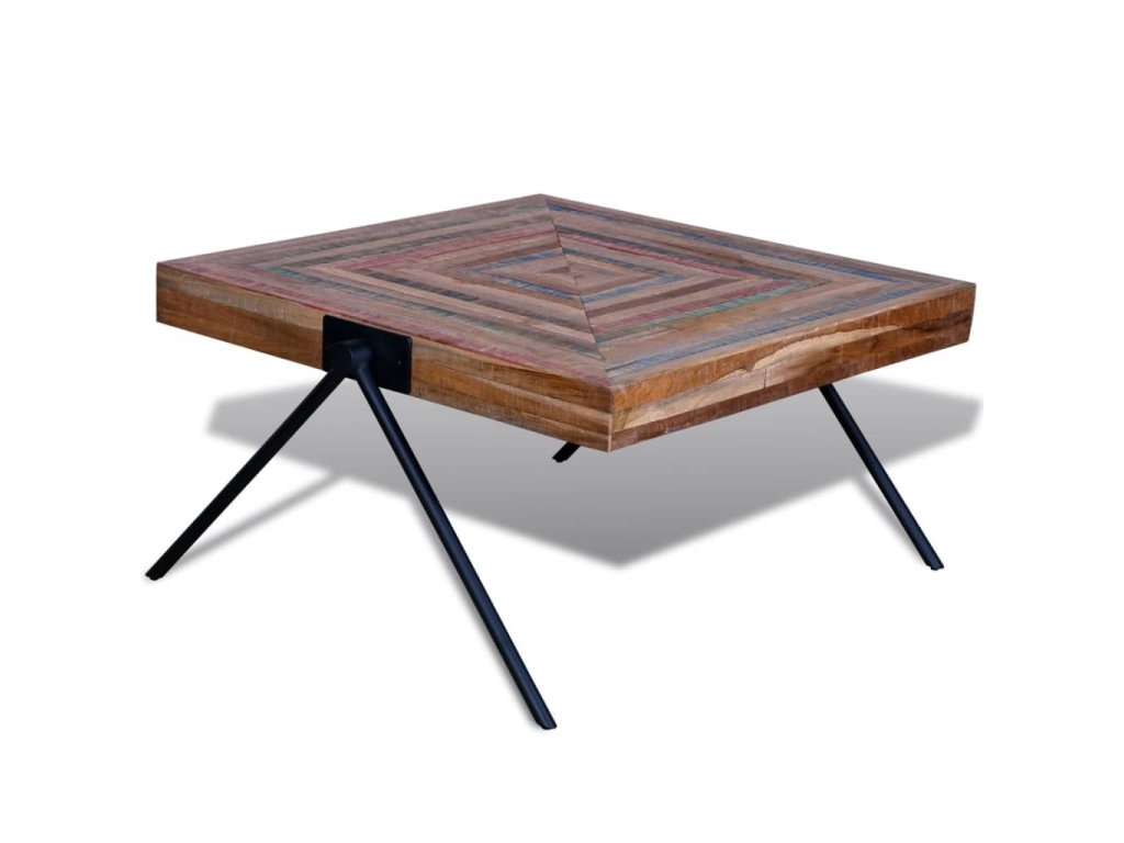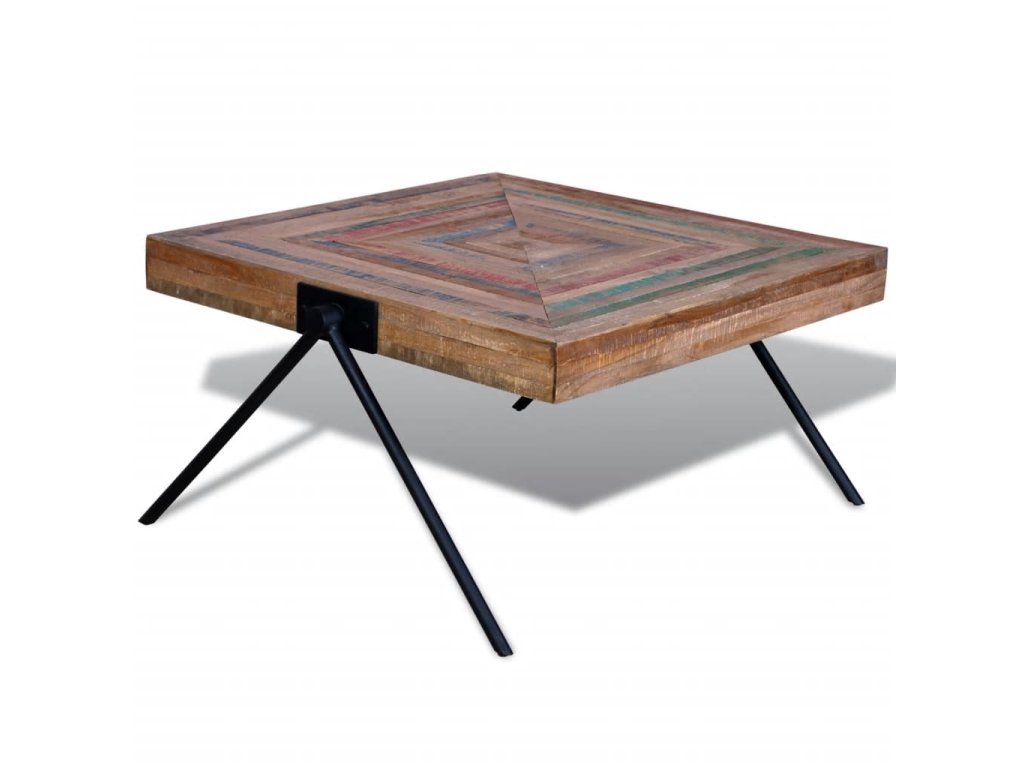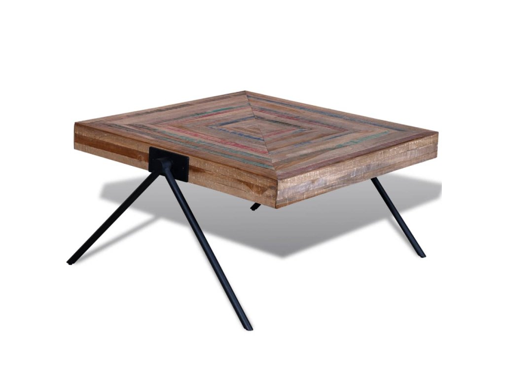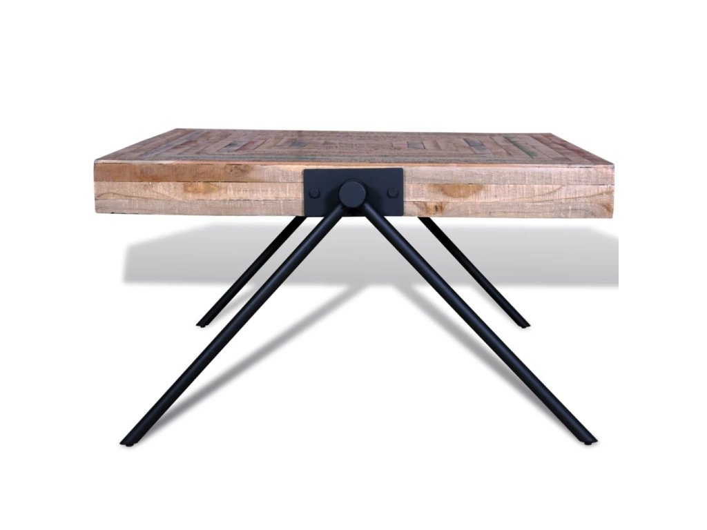 Tento konferenční stolek z recyklovaného teaku představuje nadčasový doplněk do vašeho domova. Jeho horní deska z masivního dřeva poskytuje stabilní a bezpečný povrch pro servírování nápojů nebo pro vystavení váz, mís s ovocem či jiných dekorací. Kovové nohy ve tvaru písmene V vypadají jedinečně a jsou velmi stabilní a odolné. Můžete jej použít také jako odkládací stolek.