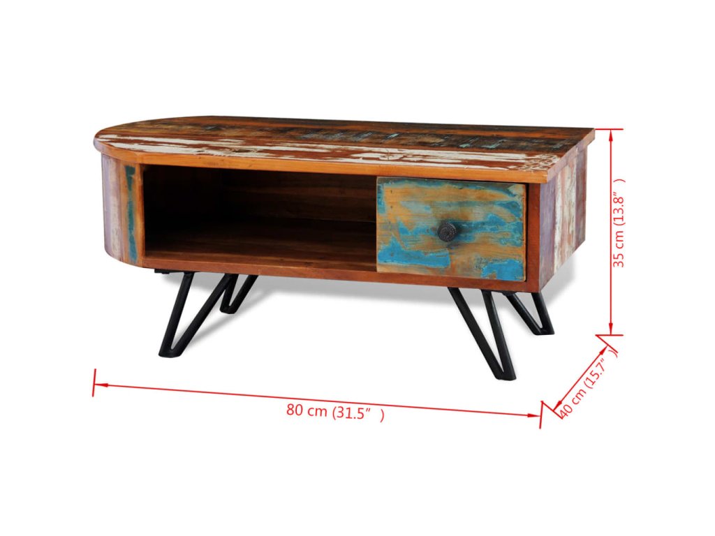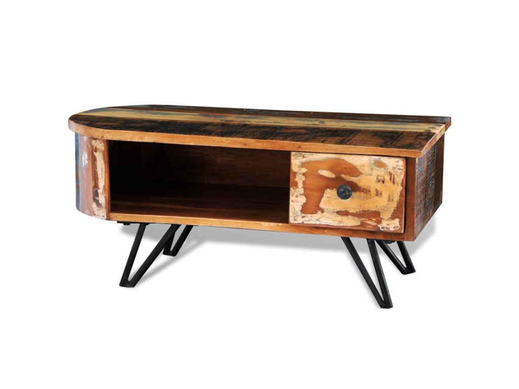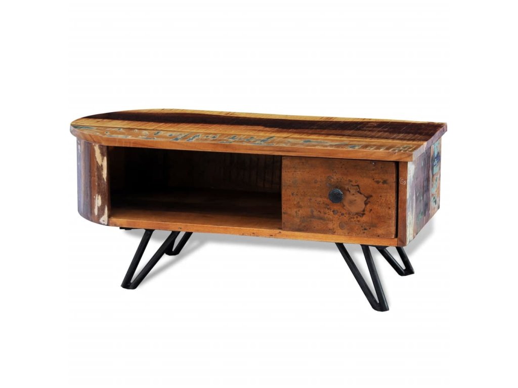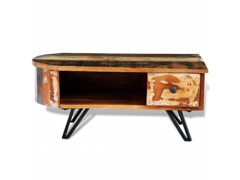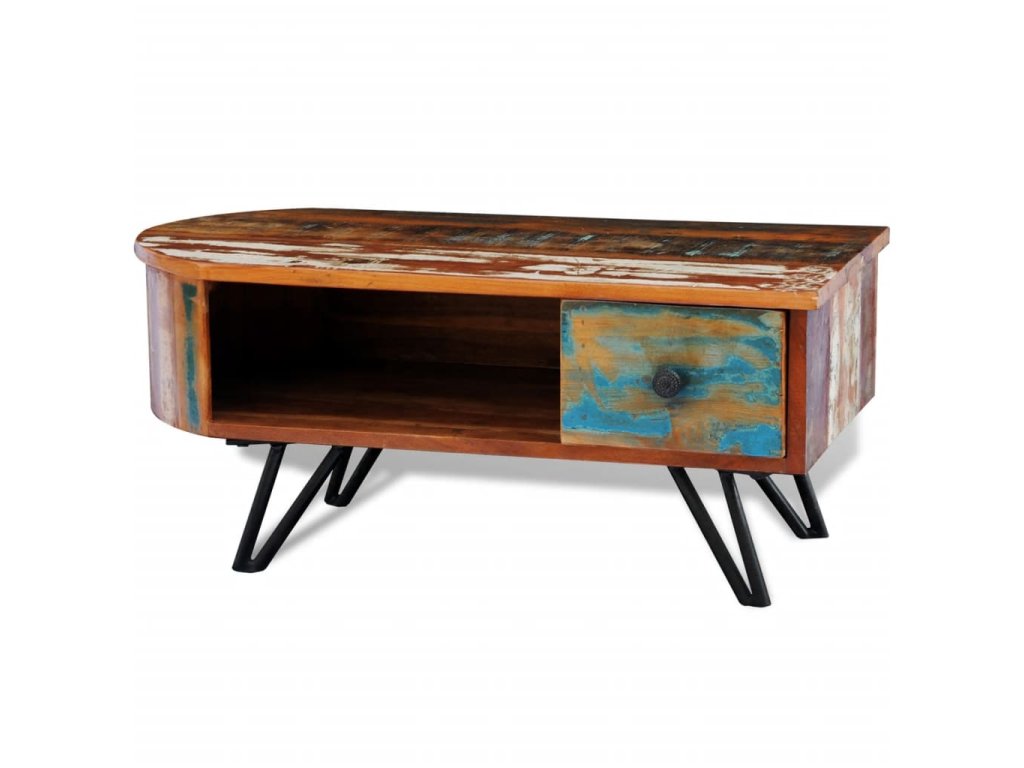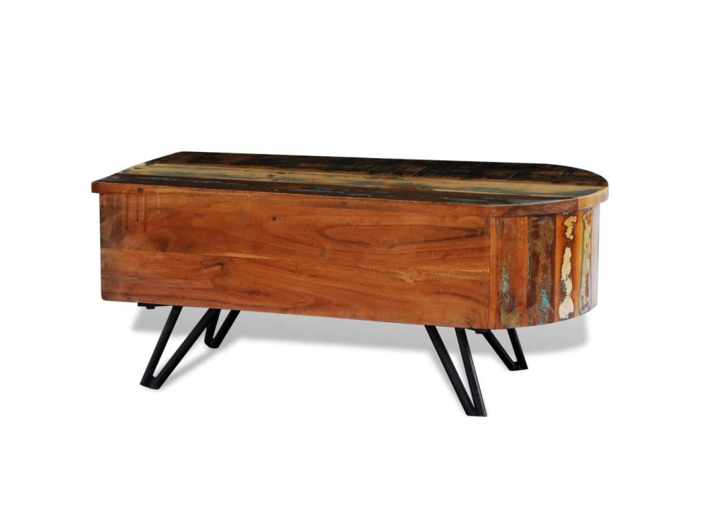 Exotický konferenční stolek z recyklovaného dřeva představuje ideální kus nábytku do klasických i moderních stylů bydlení. Povrchová úprava s patinou vyzařuje rustikální šarm.