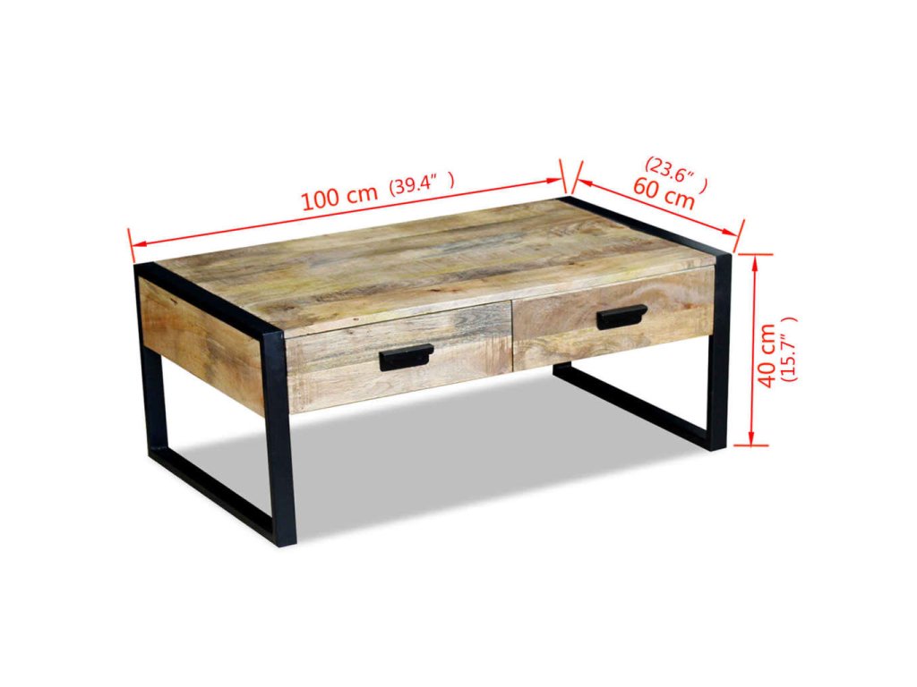 Konferenční stolek se 2 zásuvkami, masivní mangovníkové dřevo 243297