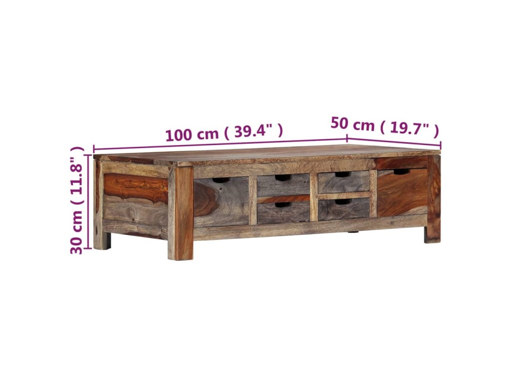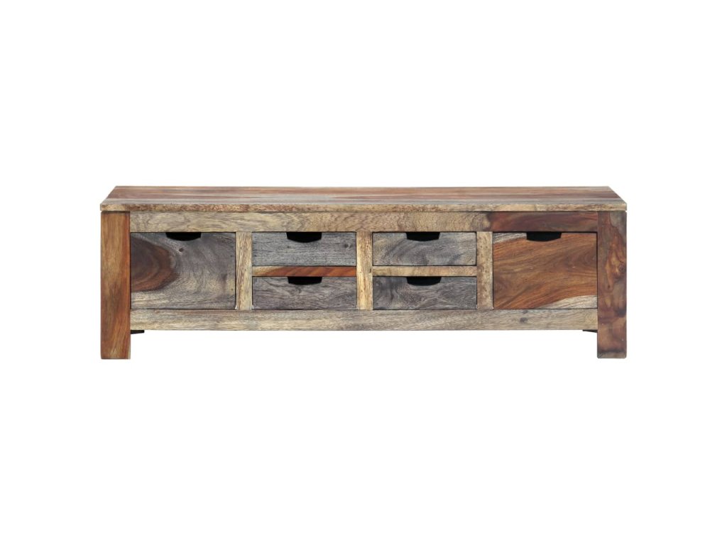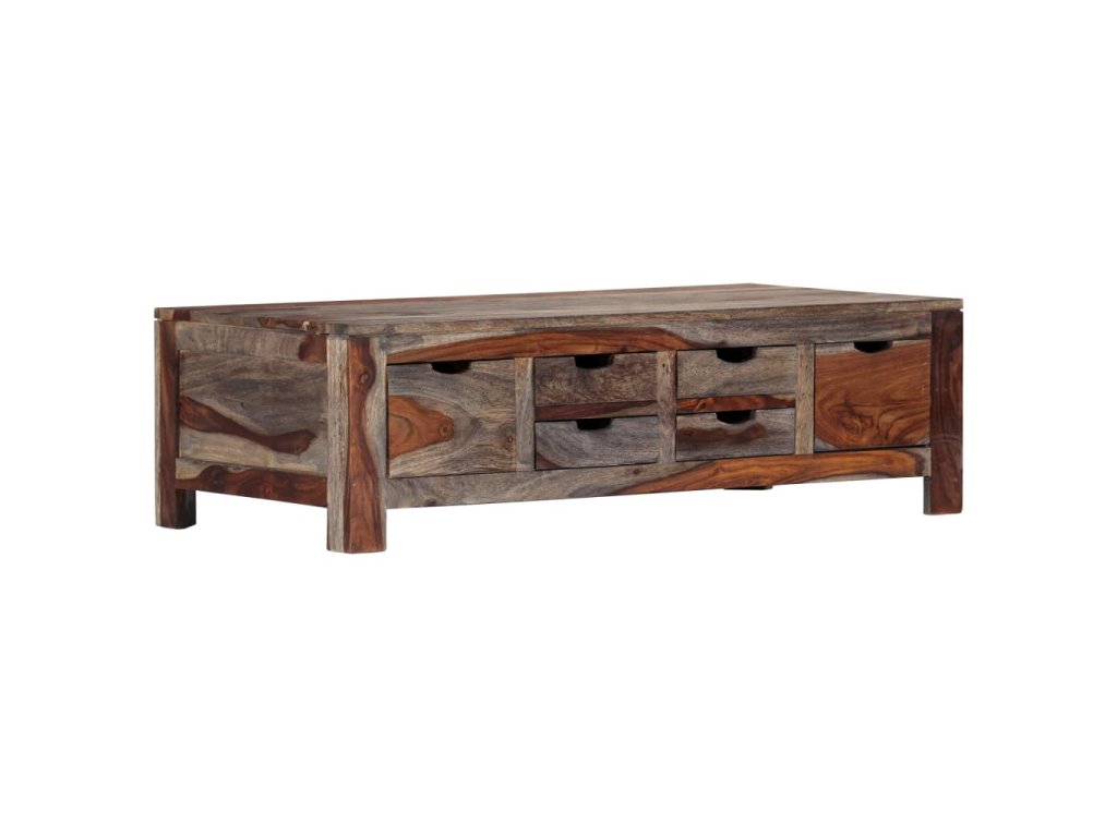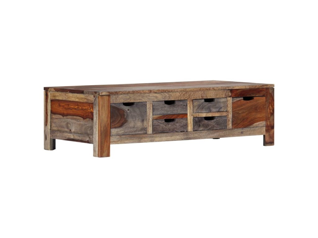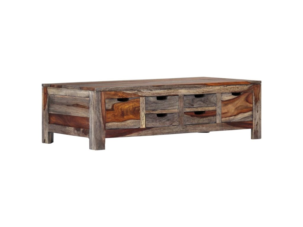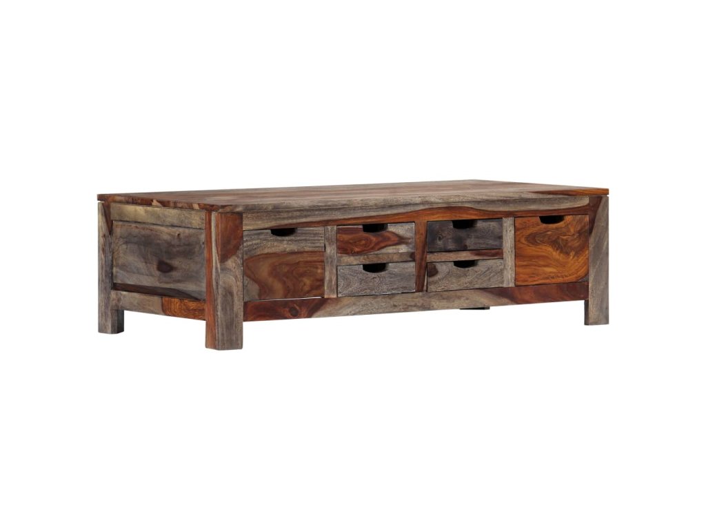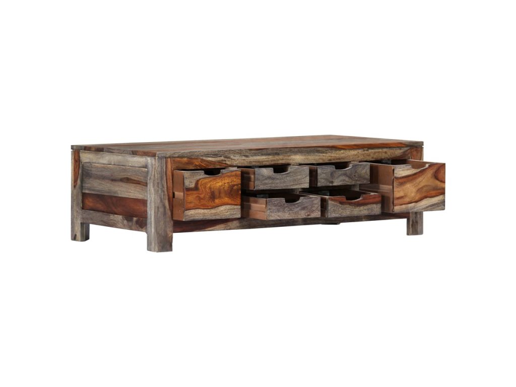 Tento praktický konferenční stolek je perfektní pro ukládání multimediálních zařízení, knížek a časopisů nebo různých maličkostí, které chcete mít po ruce. Má robustní konstrukci a je zhotoven z akáciového dřeva, takže je mimořádně odolný. Akácie, jemuž se někdy také říká rosewood nebo palisandr, je tropické tvrdé dřevo proslulé svou bohatou kresbou. Každá fáze výrobního procesu je prováděna s maximální péčí, ať už se jedná o leštění, natírání anebo lakování. Stolek disponuje 6 zásuvkami, kam si můžete ukládat všelijaké drobnosti, a otevřenou přihrádkou pro uspořádání svých multimediálních zařízení, herních konzolí a časopisů.