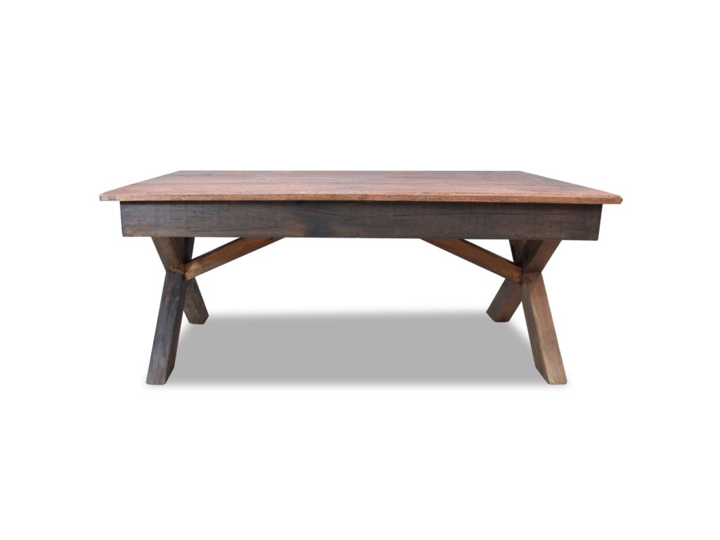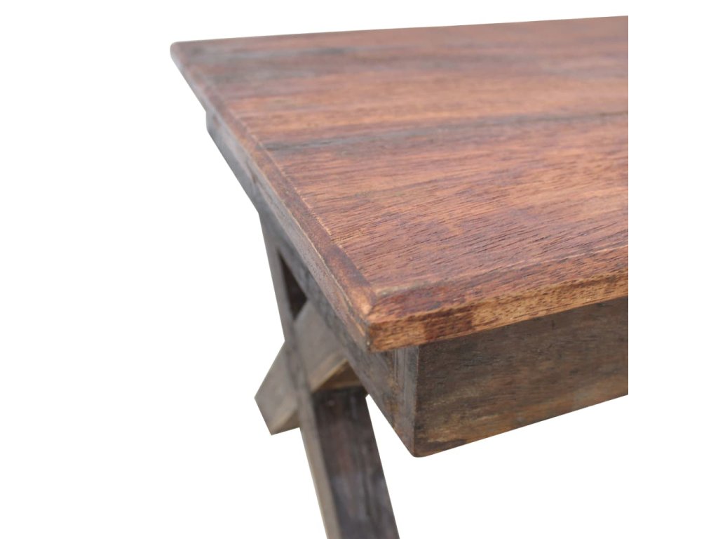 Tento dřevěný konferenční stolek bude perfektní volbou, pokud chcete do svého domova přidat nádech rustikálního kouzla. Stolek má robustní desku a nohy ve tvaru písmene X, které jsou nejen stabilní, ale také přispívají k jeho estetickému vzhledu.
