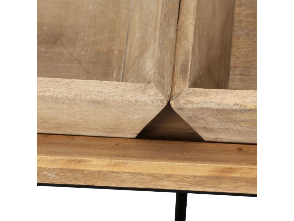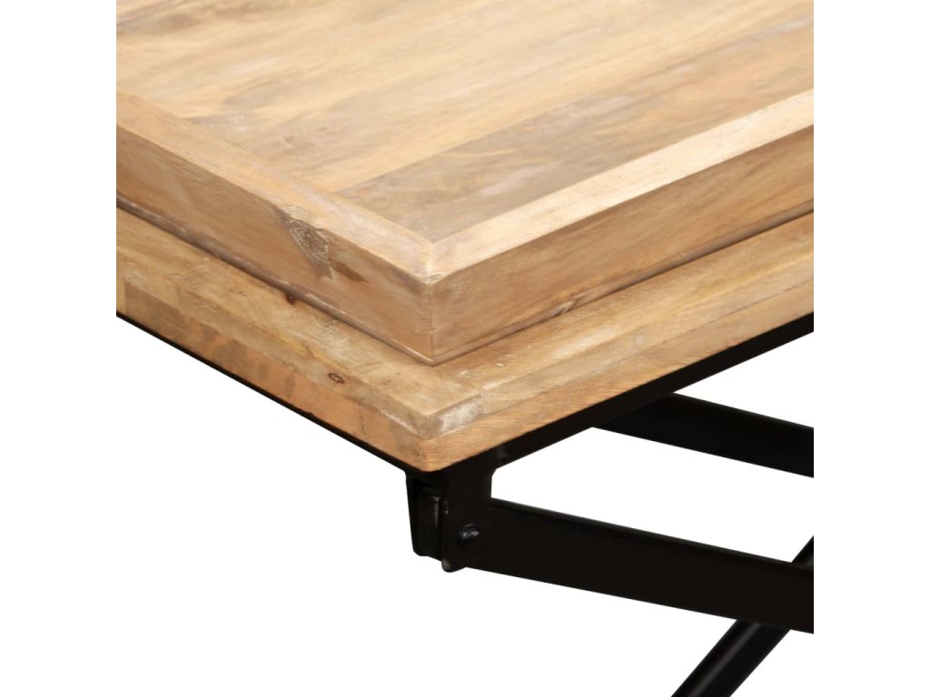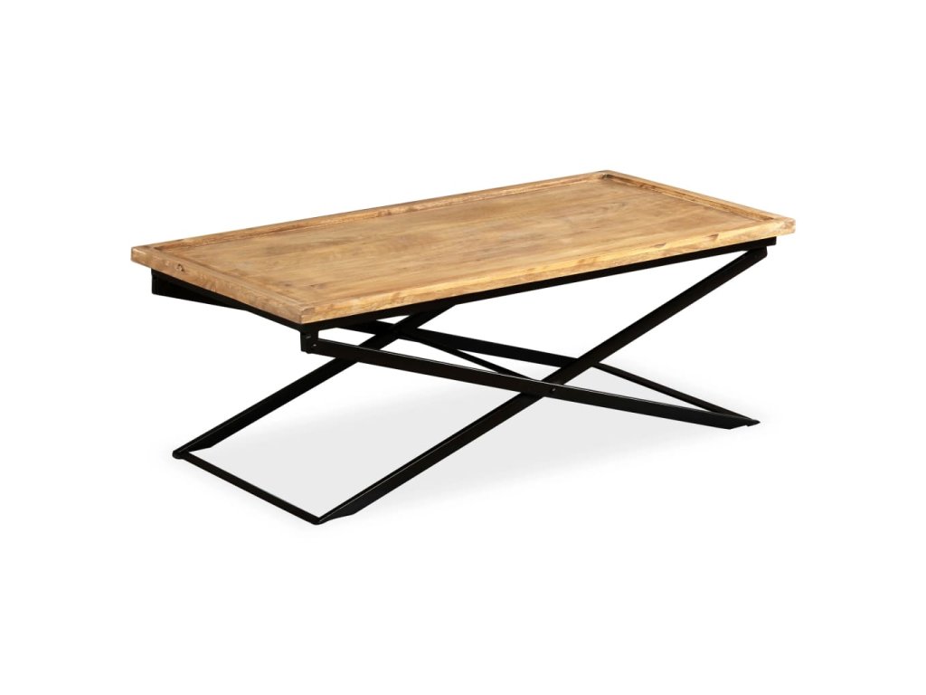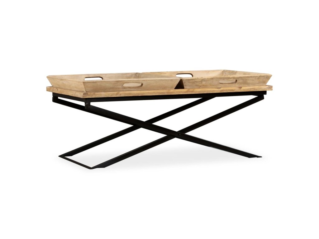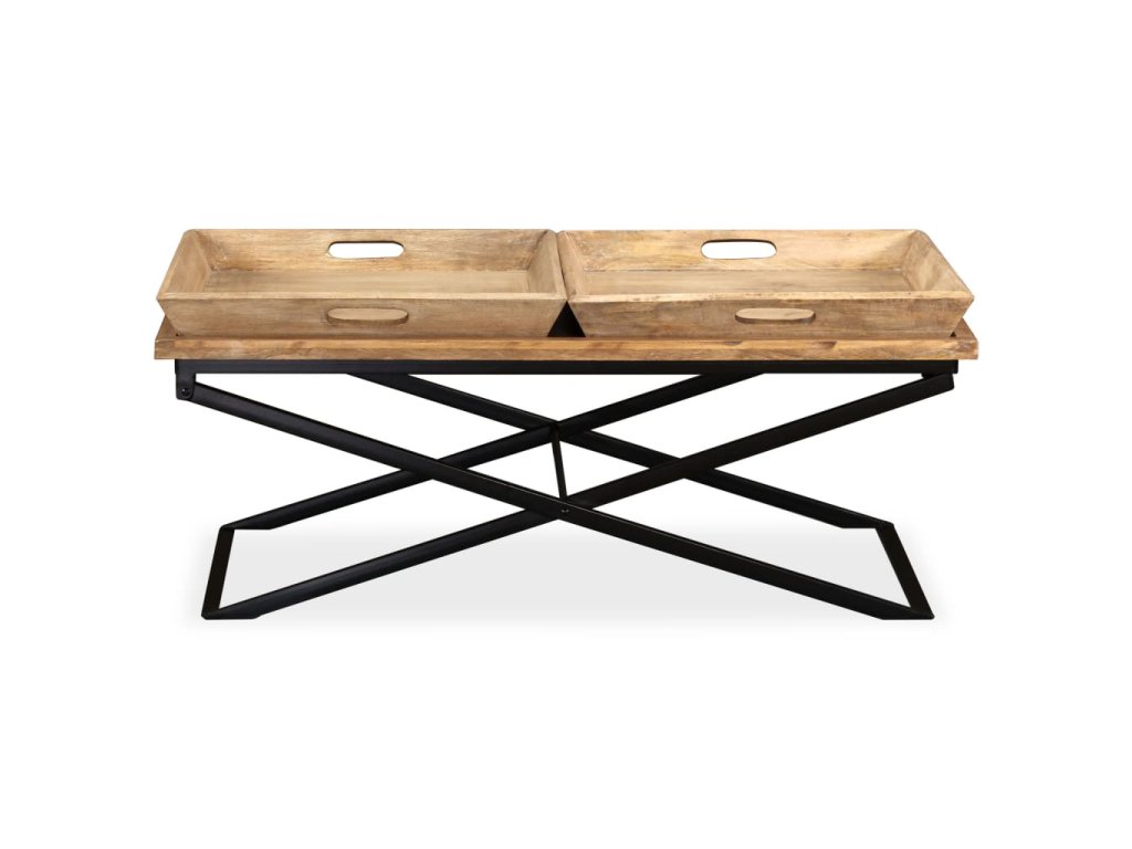 Deska stolu je vyrobena z masivního mangovníkového dřeva, které bylo obroušeno pro maximální odolnost. Nohy z oceli s práškovým nástřikem jsou navrženy do tvaru X, čímž je zajištěna perfektní stabilita stolku. Konferenční stolek disponuje dvěma dřevěnými podnosy, jež se výborně hodí k odkládání nápojů či jídla nebo k vystavování dekorativních předmětů jako jsou košíky s ovocem a vázy. V případě potřeby se dají snadno sejmout, takže je můžete používat i odděleně. Montáž je snadná.