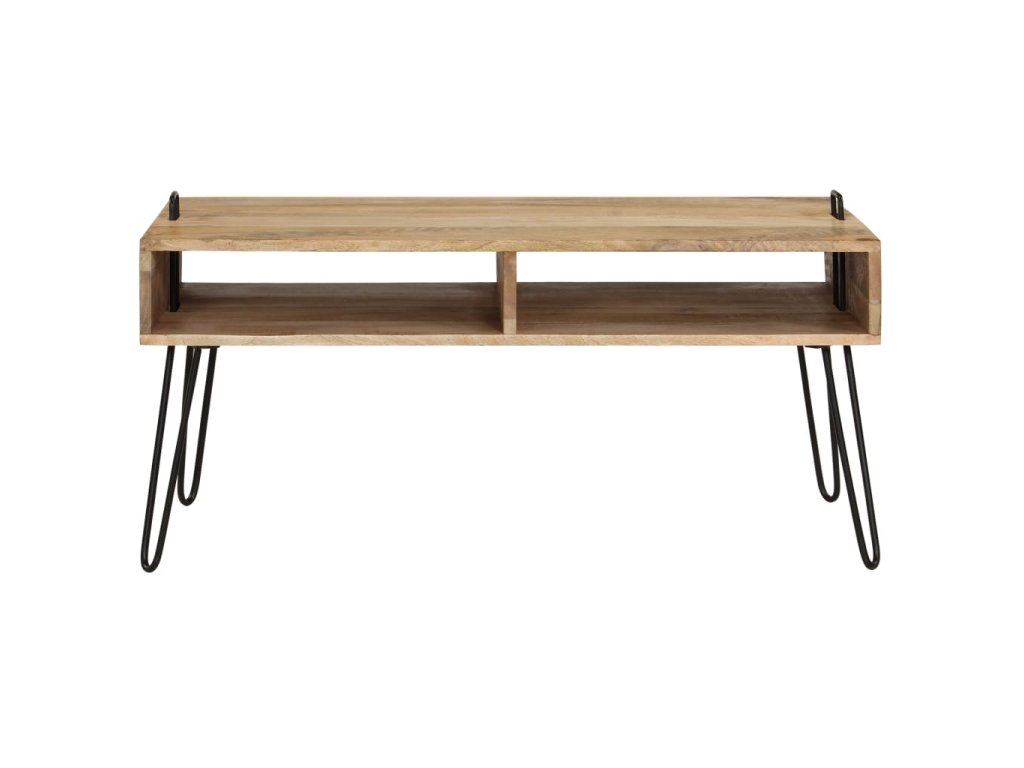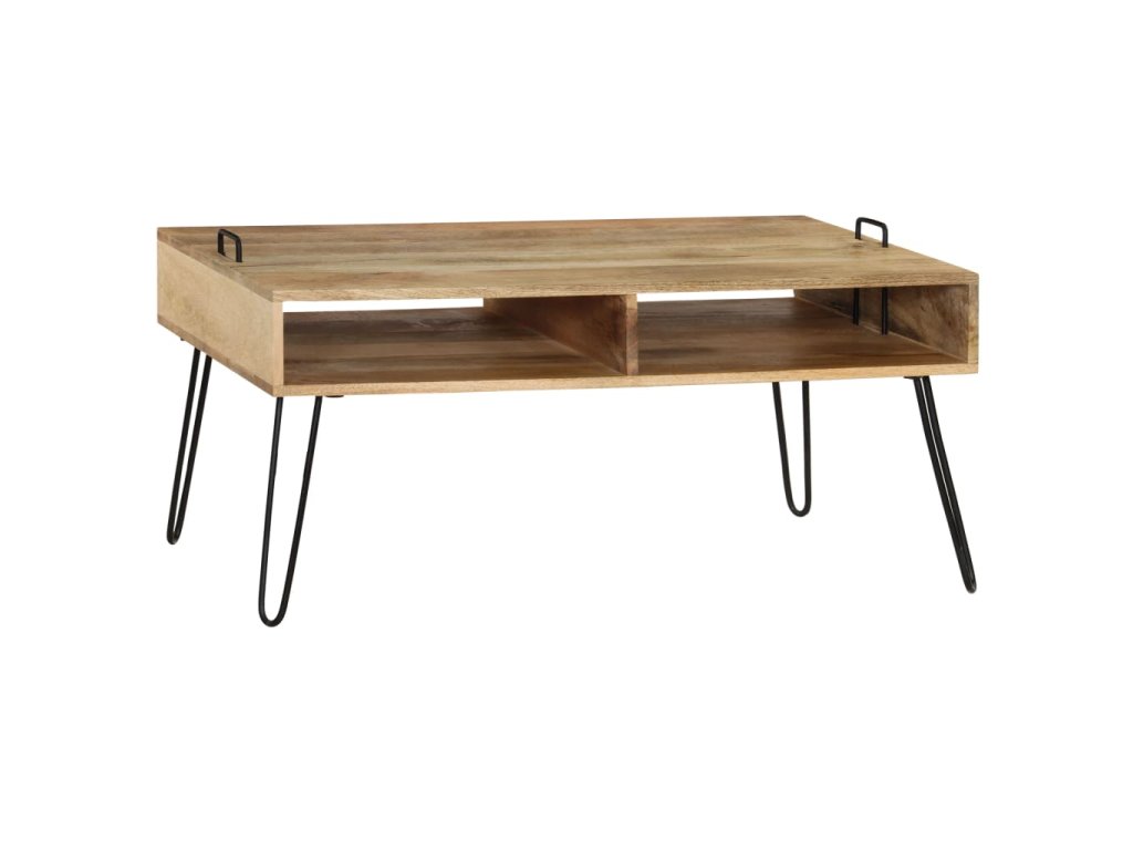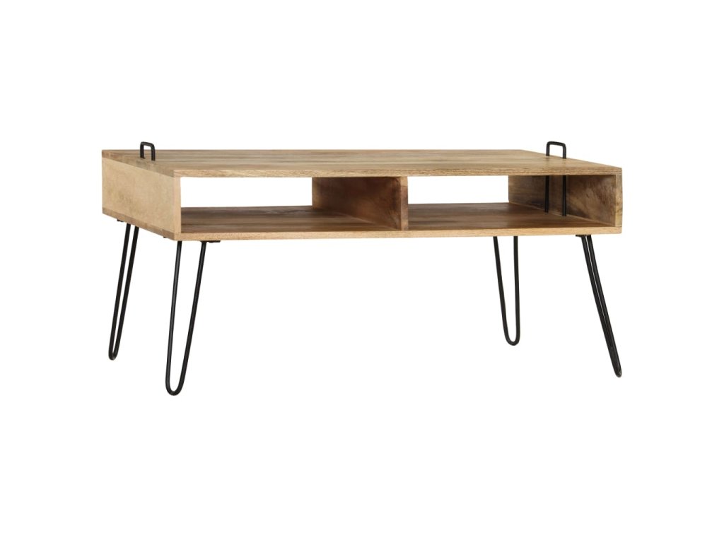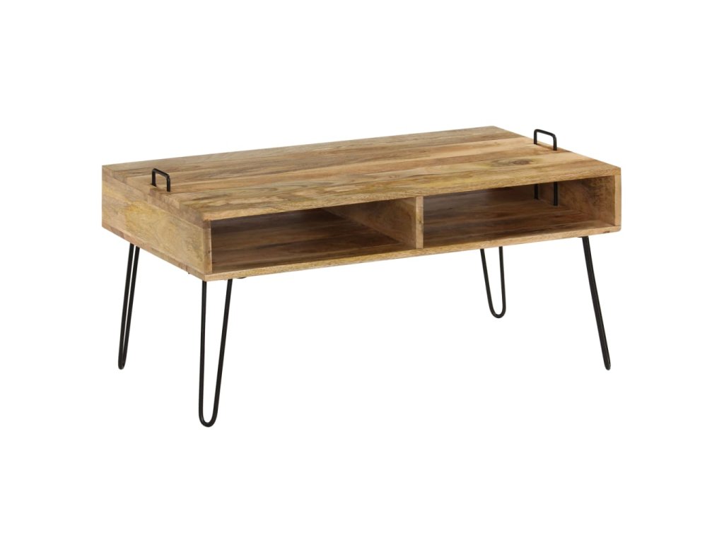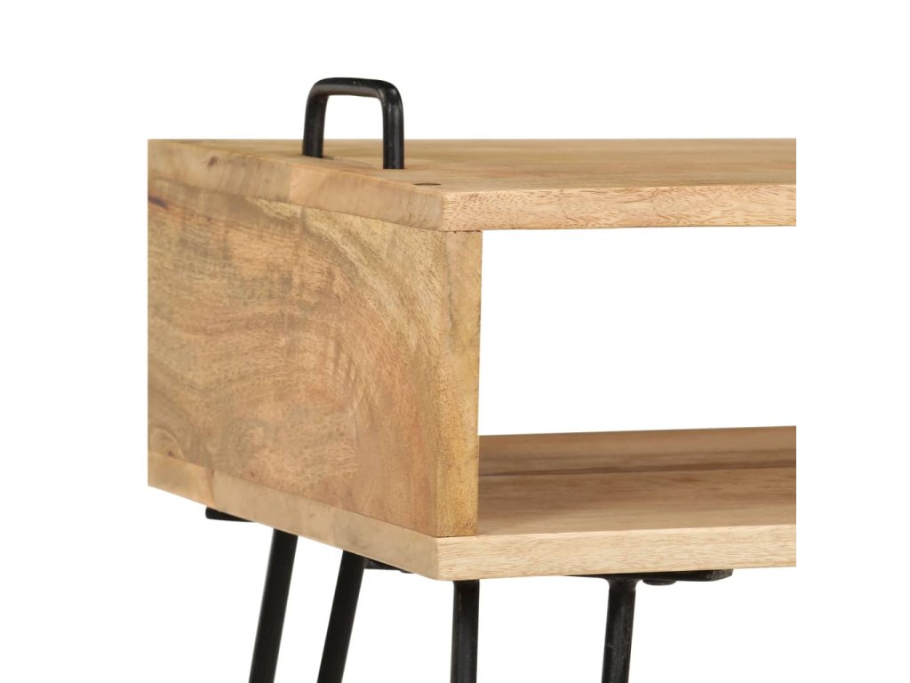 Stolek je vyroben z masivního mangovníkového dřeva s pevnými ocelovými rámy, díky čemuž je vysoce stabilní a odolný. Horní deska stolku je ideální k umístění košíků s ovocem, váz, květináčů nebo jiných dekorativních předmětů. Polička poskytuje dodatečný úložný prostor pro přehledné uchovávání nejrůznějších malých předmětů. Ocelové rámy přispívají nejen k pevnosti stolku, ale i k jeho industriálnímu stylu. Každý krok výrobního procesu je prováděn s největší péčí, ať už se jedná o leštění anebo lakování. Montáž stolku je snadná.