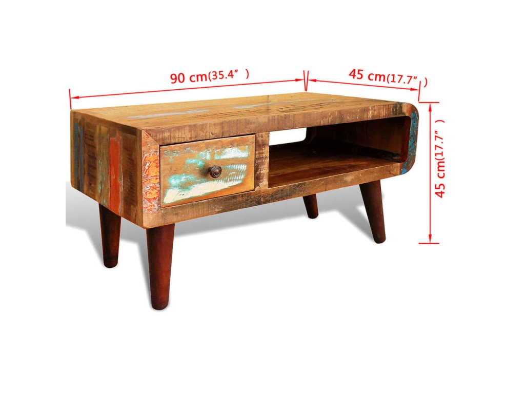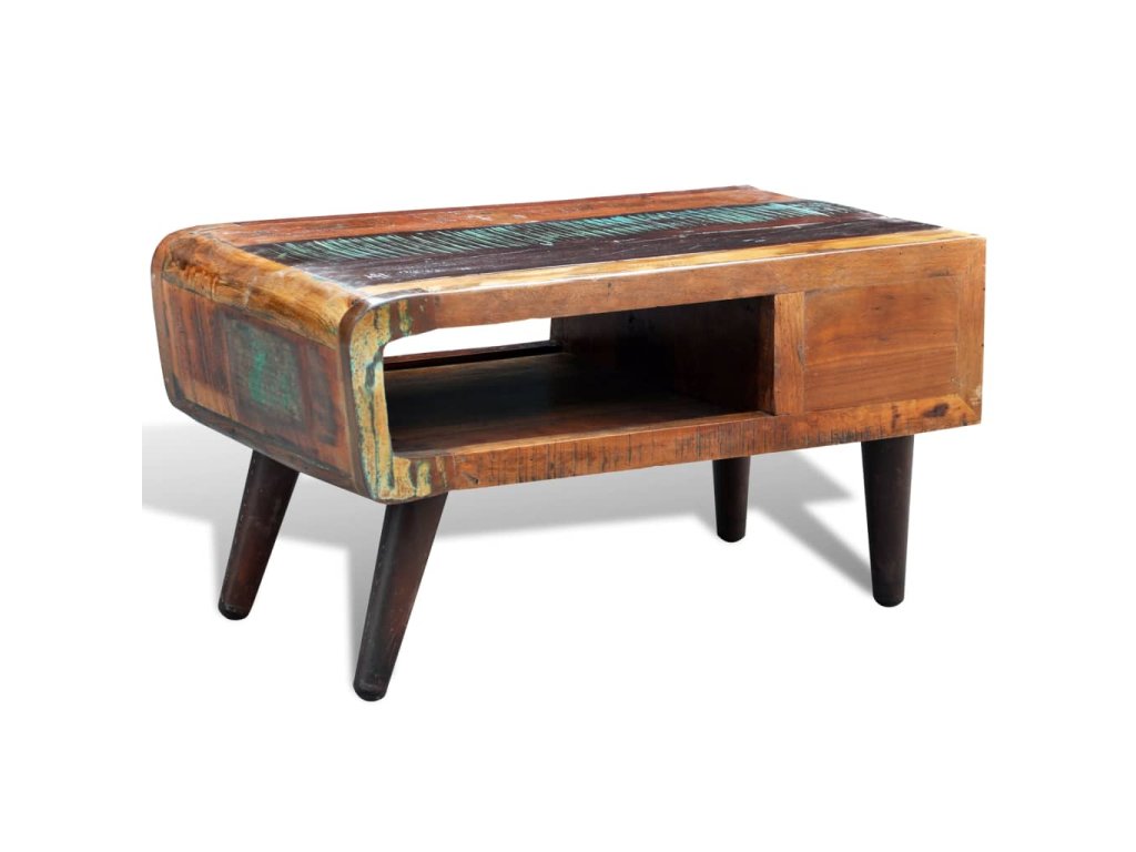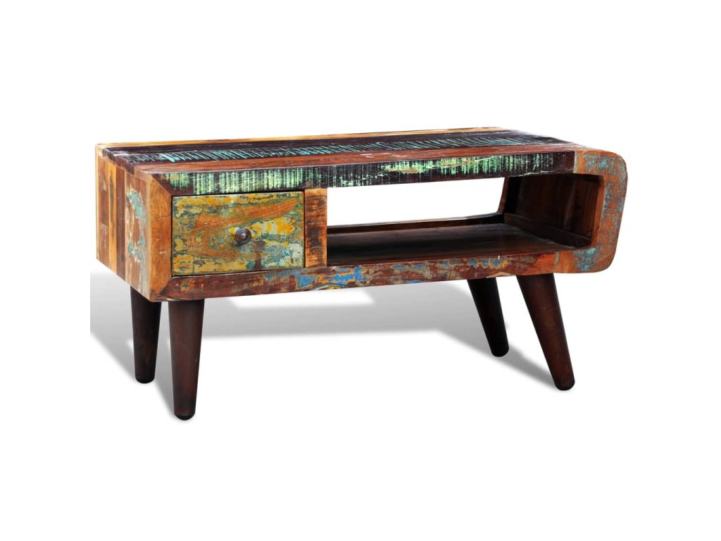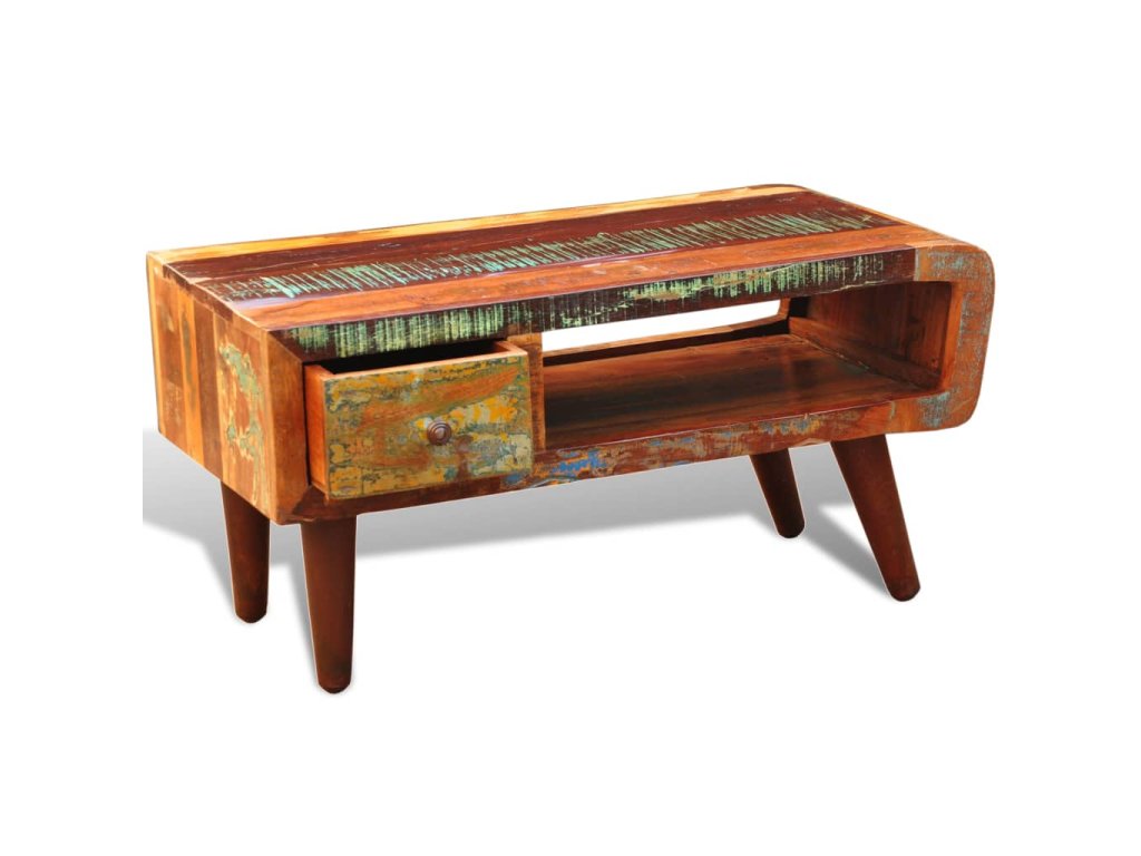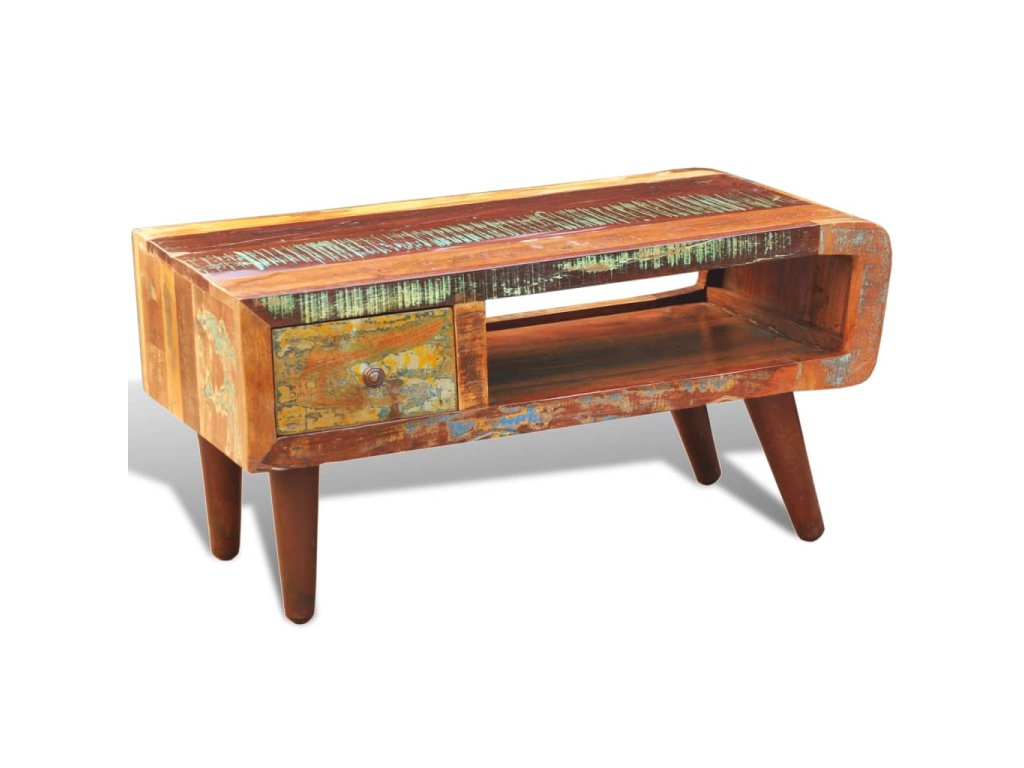 Konferenční stolek zaoblený tvar 1 zásuvka recyklované dřevo 241008