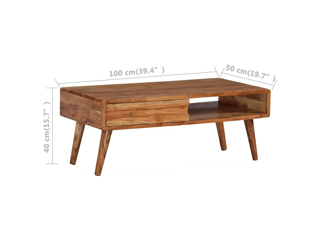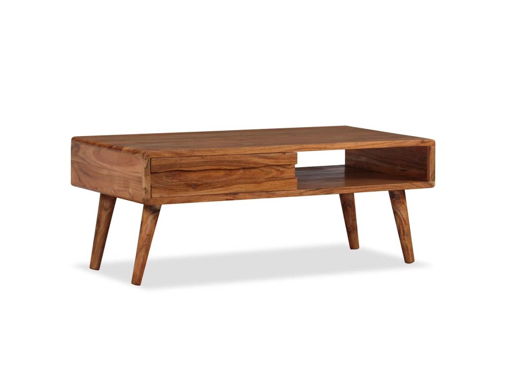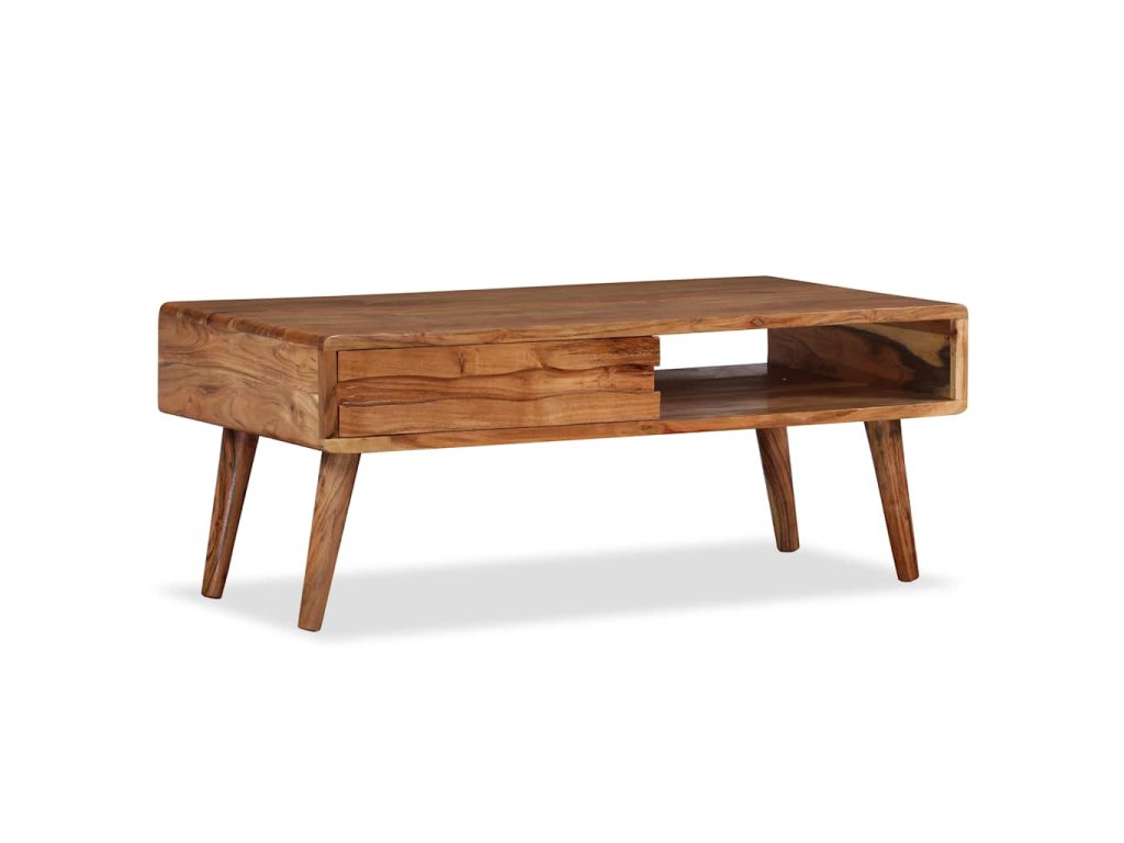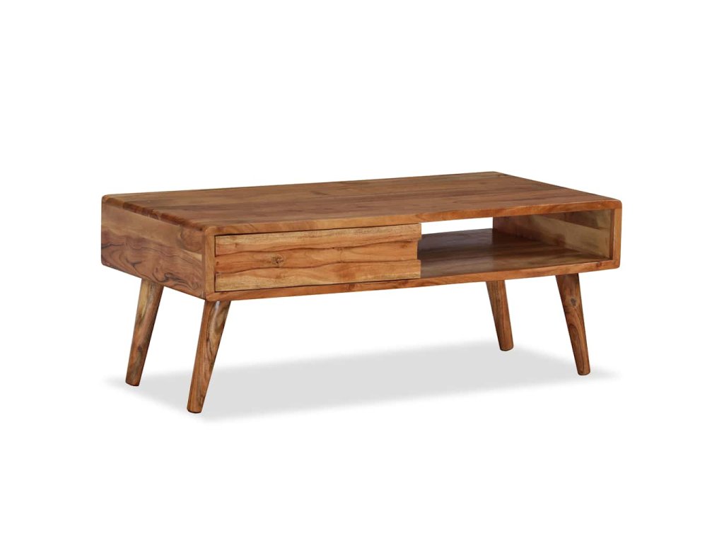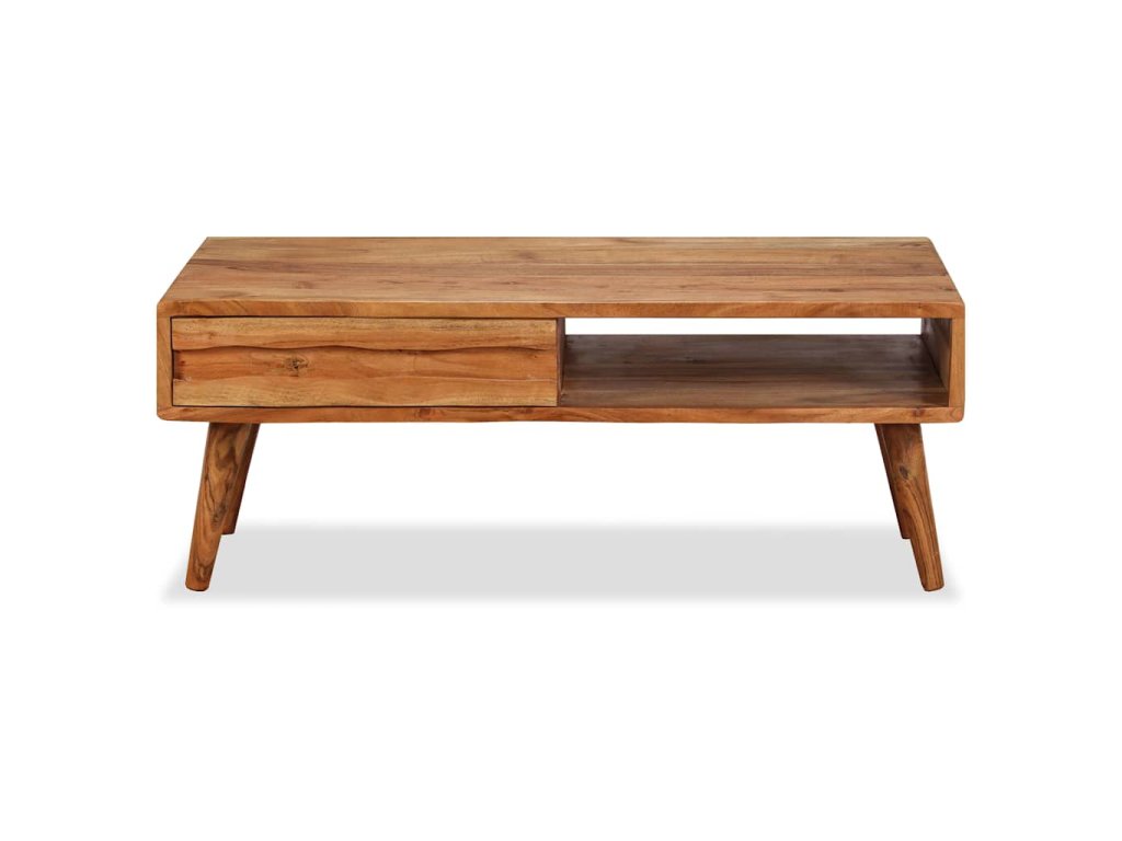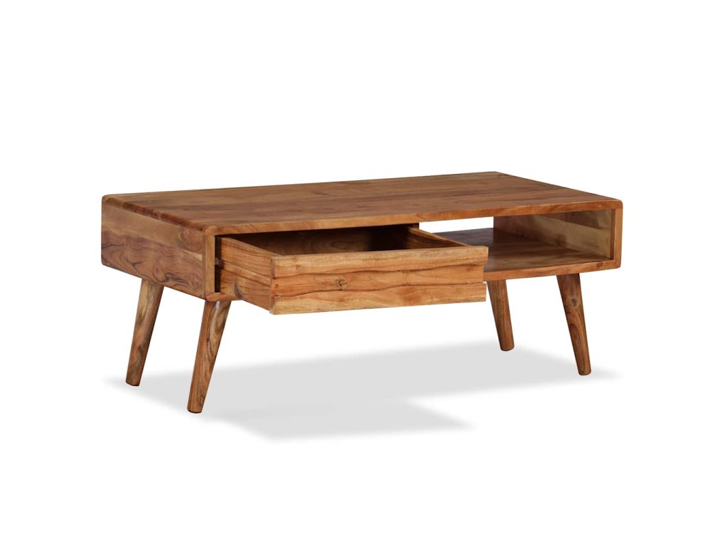 Konferenční stolek je vyroben z krásně vyleštěného, natřeného a nalakovaného akáciového masivního dřeva, které tomuto nábytku propůjčuje rafinovaný vzhled. Tento stůl je ručně vyrobený a také krásná kresba dřeva činí každý kus nábytku jedinečný a lehce odlišný od ostatních. Tento stolek má pevnou a stabilní horní desku, na kterou můžete položit vaše nápoje, jídlo, košíky s ovocem a dekorativní předměty. Konferenční stolek se vyznačuje vyřezávanou zásuvkou a přihrádkou, které poskytují dodatečný prostor k uložení vašich časopisů, knih, TV ovladačů a maličkostí, které chcete mít po ruce. Montáž je snadná.