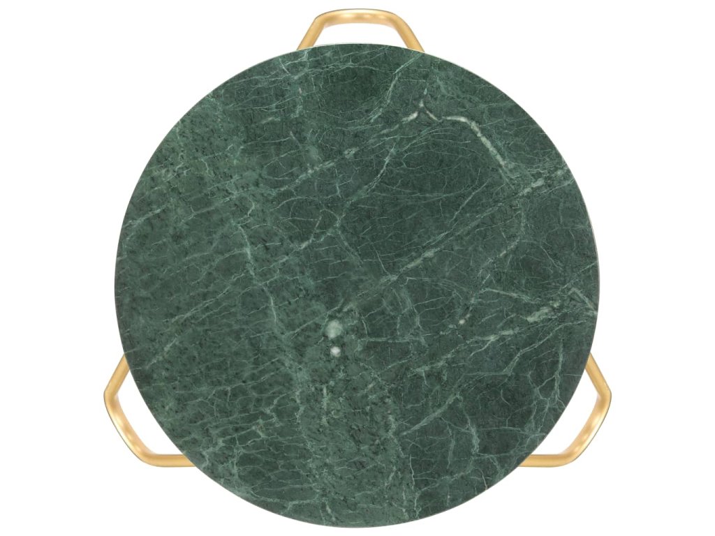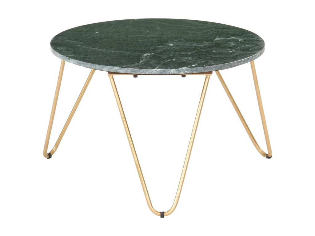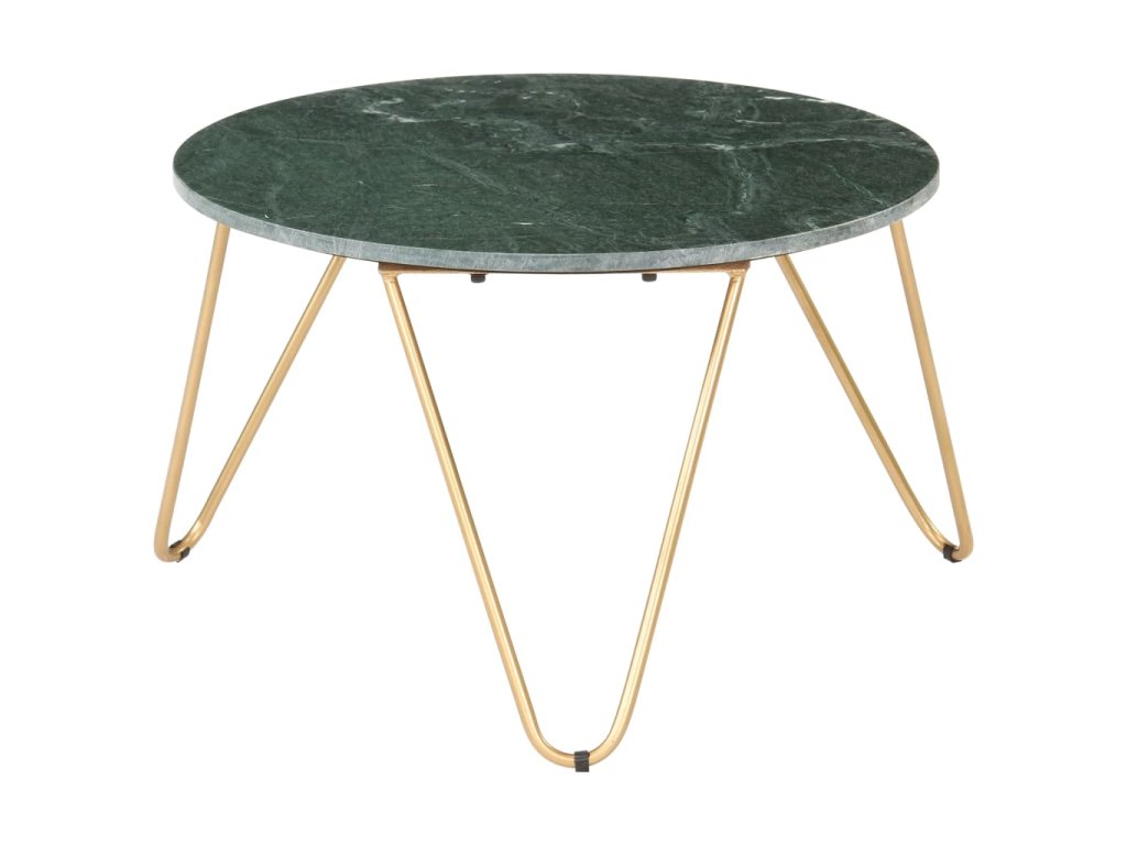 Stolek je vyrobený z pravého kamene s mramorovým vzorem a odolného práškově lakovaného železného rámu. Je stabilní a má dlouhou životnost. Na stabilní stolní desku si můžete s důvěrou umístit vaše nápoje, vázy, mísy s ovocem a jiné dekorace. Tento koncový stolek se snadno čistí vlhkým hadříkem.