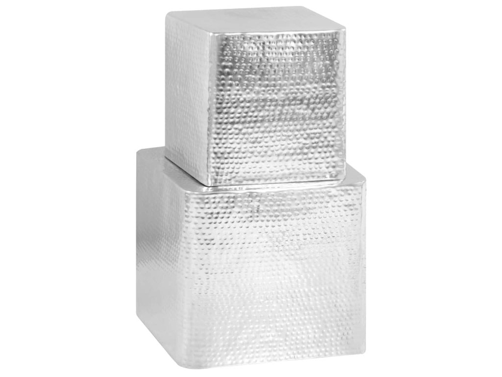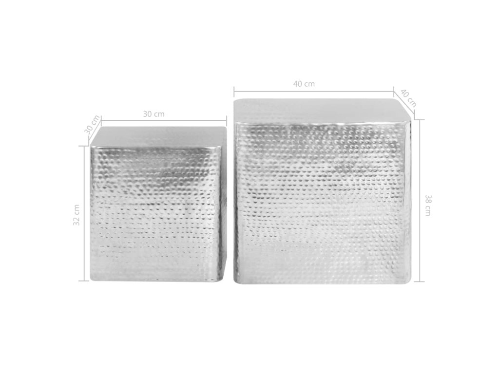 Odkládací stolky jsou vyrobeny z leštěného hliníku, který je stabilní a odolný. Atraktivní tlučený povrch dodává stolu hmatatelnou texturu. Upozorňujeme, že výrobku jsou již sestaveny.